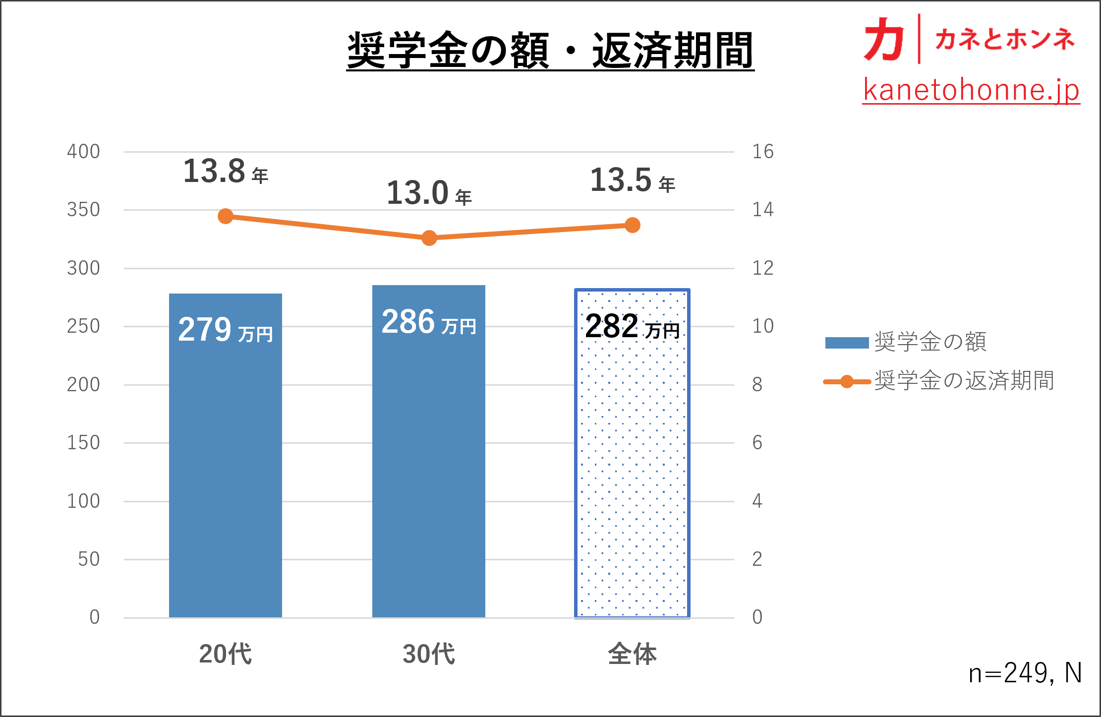 なお、20代と30代で奨学金の借入額や返済期間はほとんど同じで、ここ20年変わっていないことが分かります。