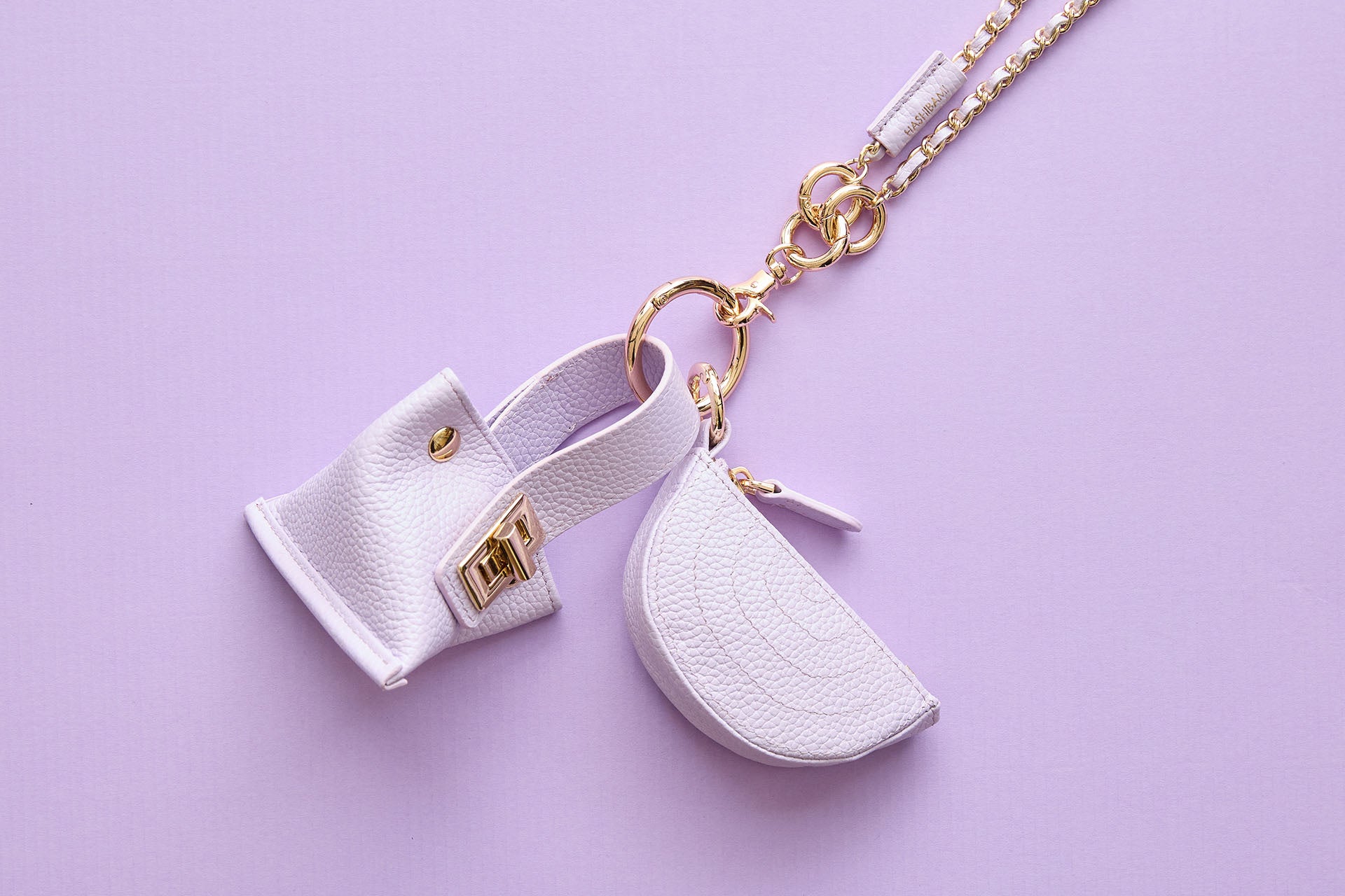 さらに、バッグだけでなく、スマホショルダーのストラップに装着したり、パンツのベルトループに付けるのもトレンド感があっておすすめ。