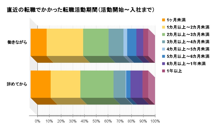 転職活動にかかった期間を働きながらの人、辞めてからの人に分けて調査しました。