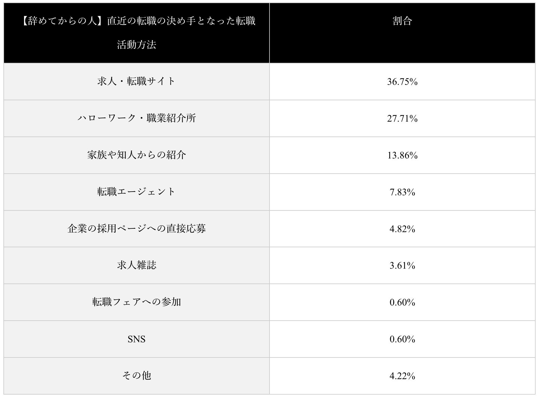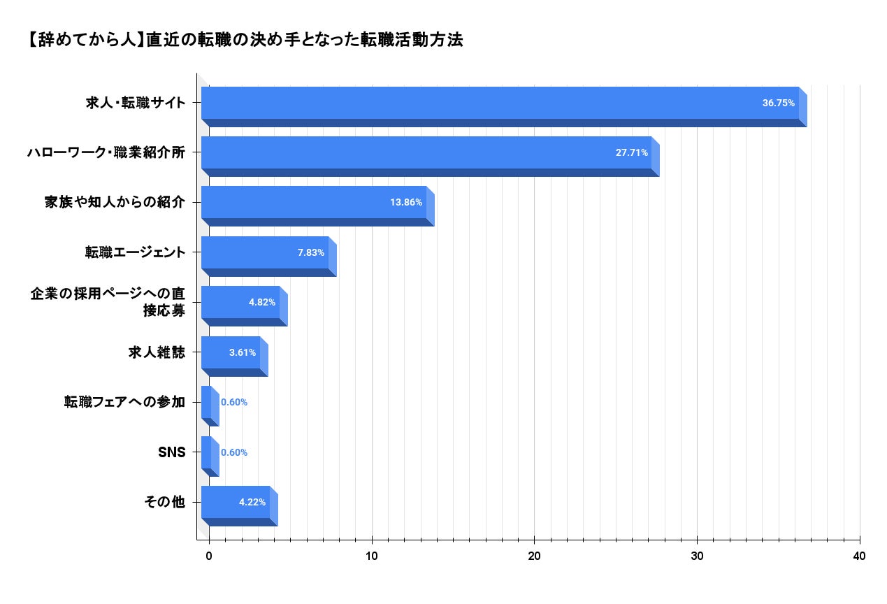 辞めてから転職活動をした人が転職の決め手となった転職活動方法は、以下の結果となりました。