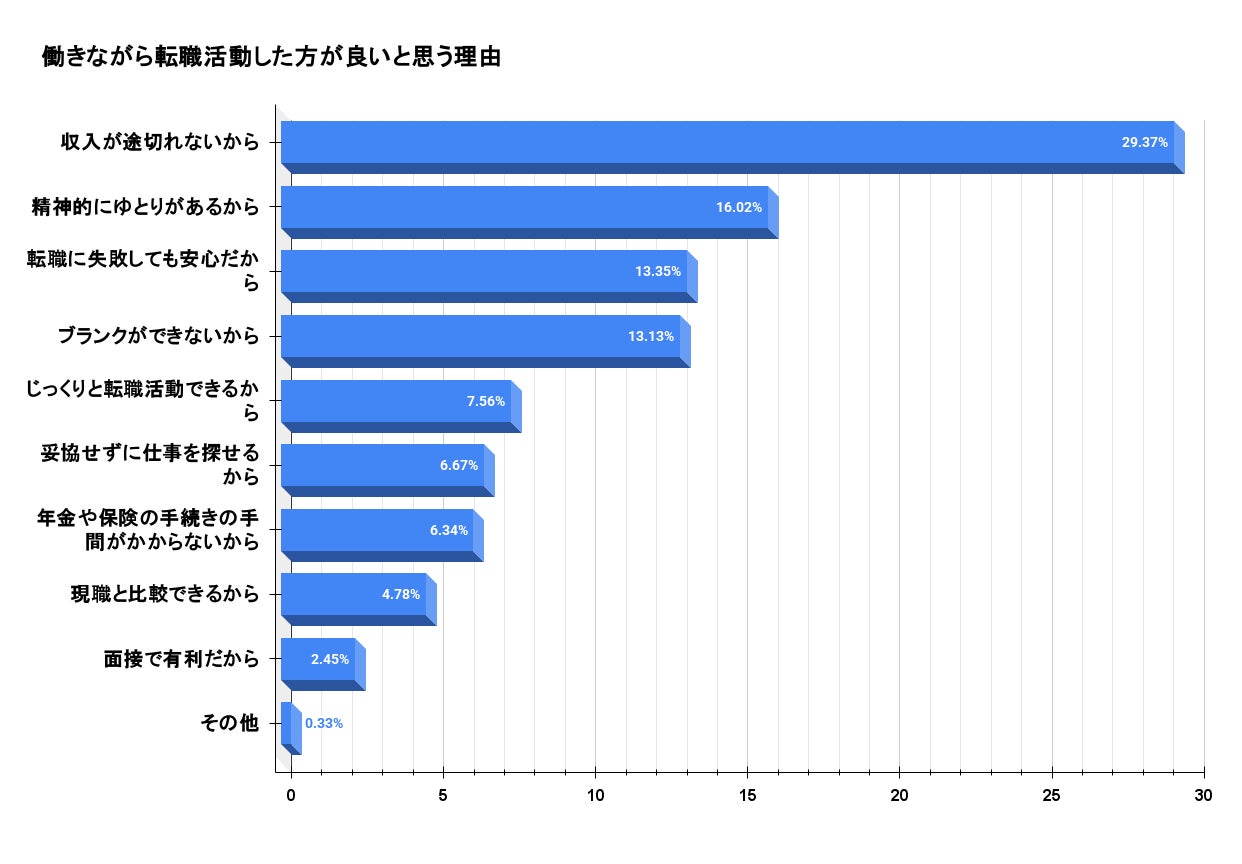 働きながら転職活動した方が良いと思う理由を調査した結果は以下のとおりです。