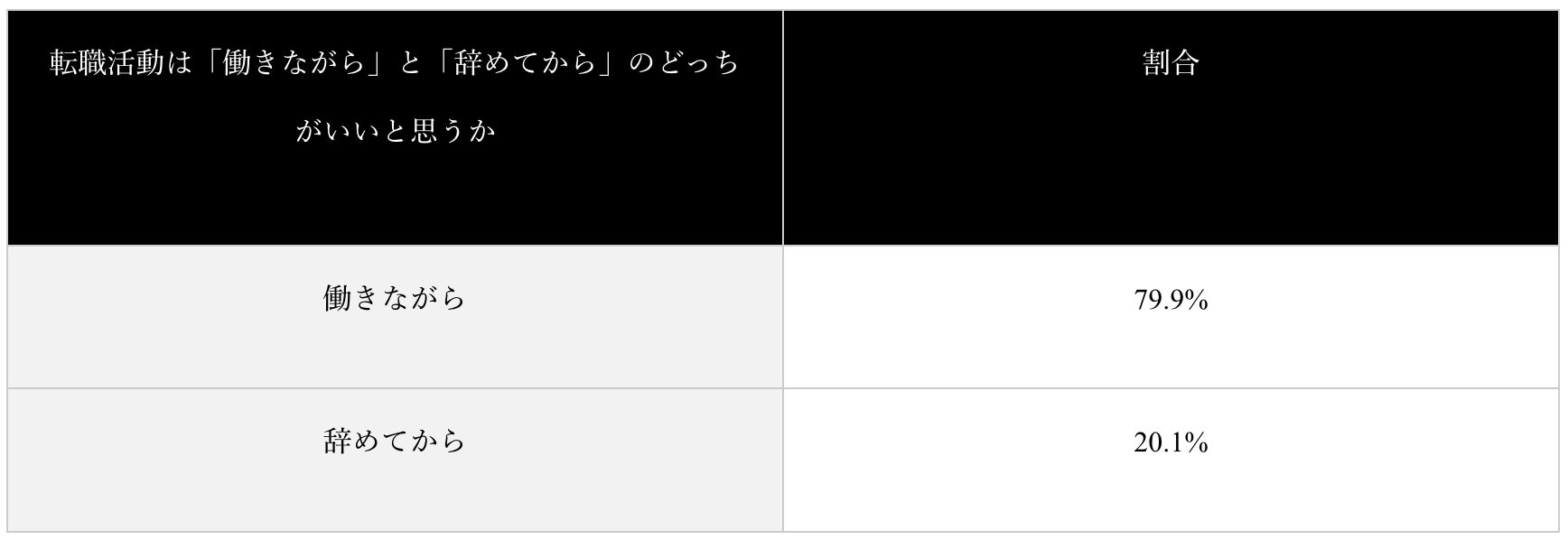 約8割が「転職活動は働きながらするべき」と回答|在職中派と退職してから派の転職活動方法に関する調査結果