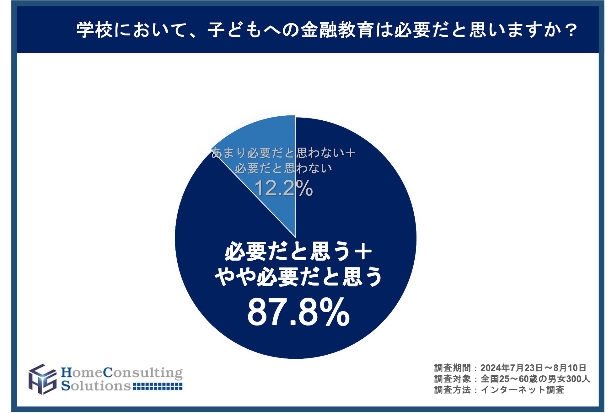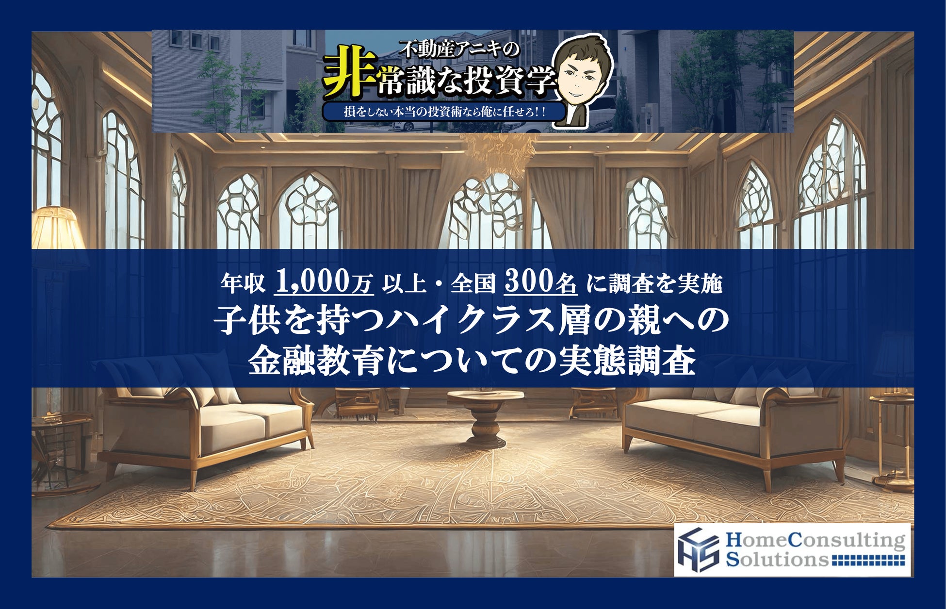 不動産コンサルティングのホームコンサルティングソリューションズ株式会社(愛知県名古屋市、代表・小林大祐)は、年収1,000万円以上の全国男女25〜60歳の300名を対象に、「年収1000万円以上の親に聞く『子供への金融教育』についての実態調査」を実施しました。