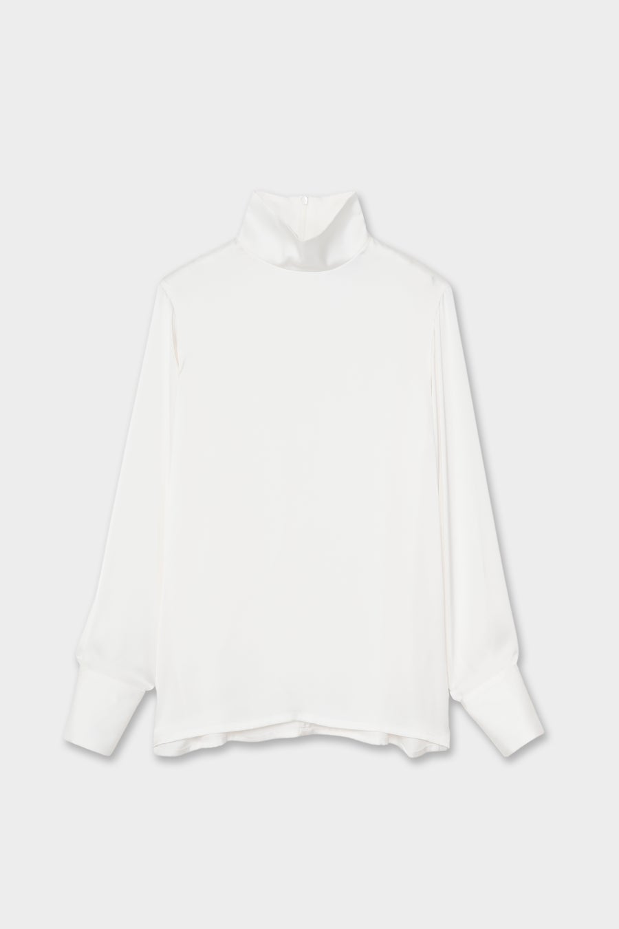 身体と素材の間に作られた空間に生まれるドレープがエレガントな印象のプルオーバーブラウス。