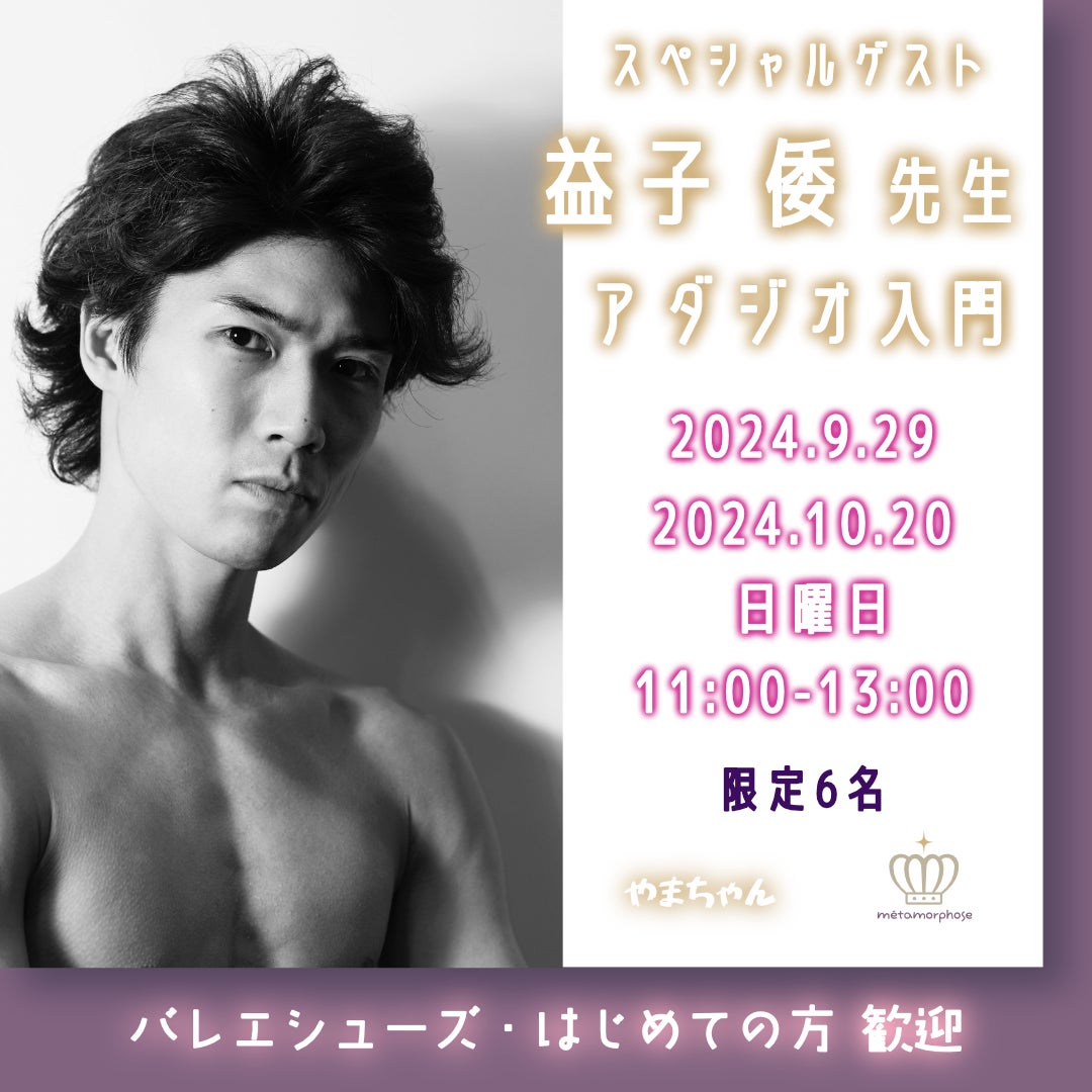 この度 講師に日本全国の舞台やYouTubeで大活躍中の「やまちゃん」こと益子 倭(ましこ やまと、元Kバレエ カンパニー ソリスト)氏を迎え、アダージオ特別レッスンを開催いたします。