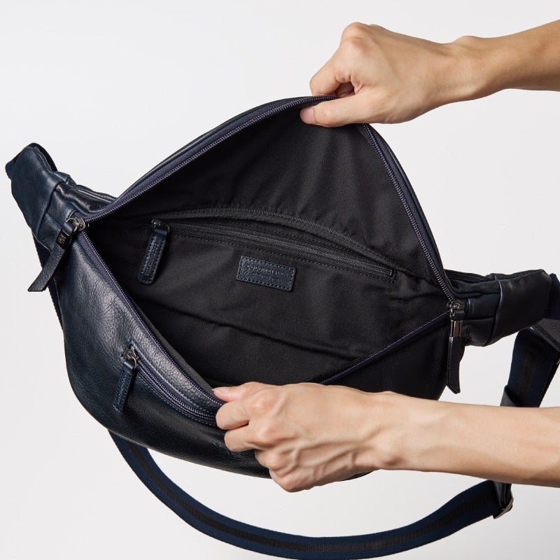 生地バッグで使われている製法を、レザーの熟練職人が実現することで、重厚感とアクティブなデザインの両立を実現しています。休日のアクティブスタイルにしっかりFITするデザイン、質感に、どんな服装にも似合うお洒落さを持ち合わせています。