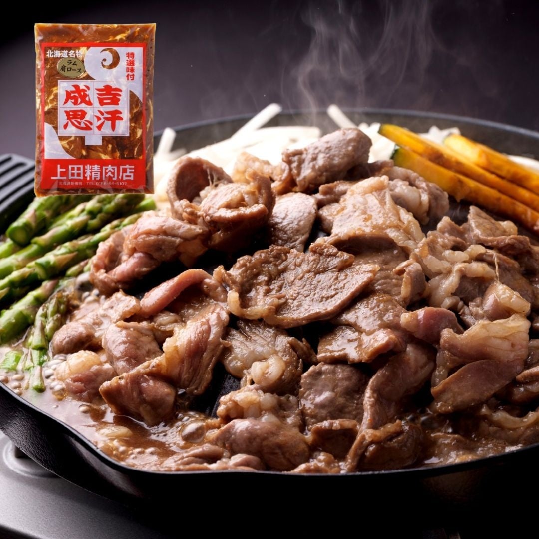 「上田のラム肩ロースジンギスカン」は、ラム肉の中でも柔らかい肩ロースだけを使用し、伝統のタレに漬け込んでいます。こだわり抜いたジンギスカンは「味付ジンギスカングランプリ2024」でグランプリを受賞しました。大人のひと口程度の大きさで食べやすいことが特徴です。ホットプレートでも簡単に調理でき、ご自宅用にも、そして贈り物にも喜ばれるジンギスカンです。ぜひご賞味ください。
