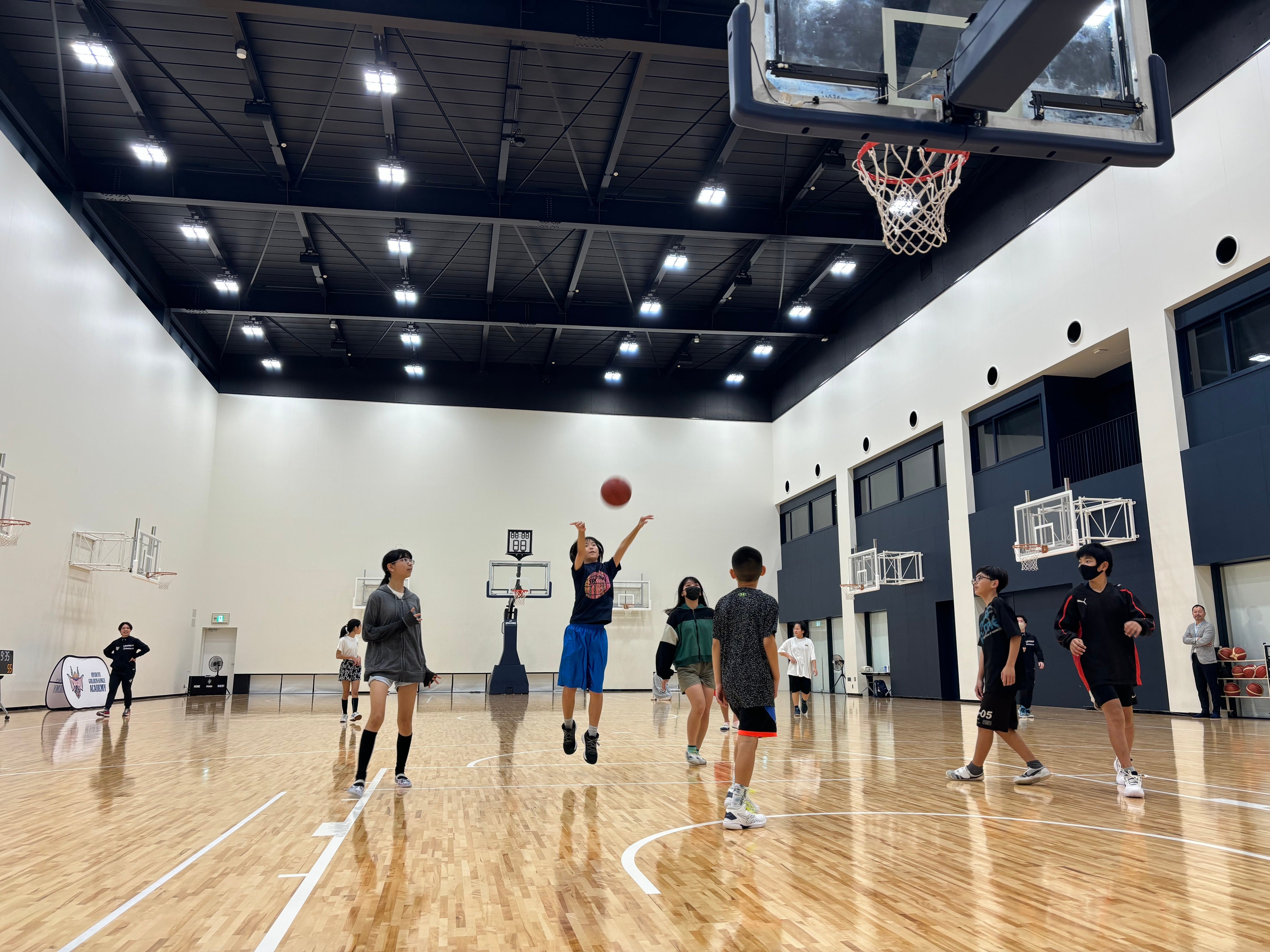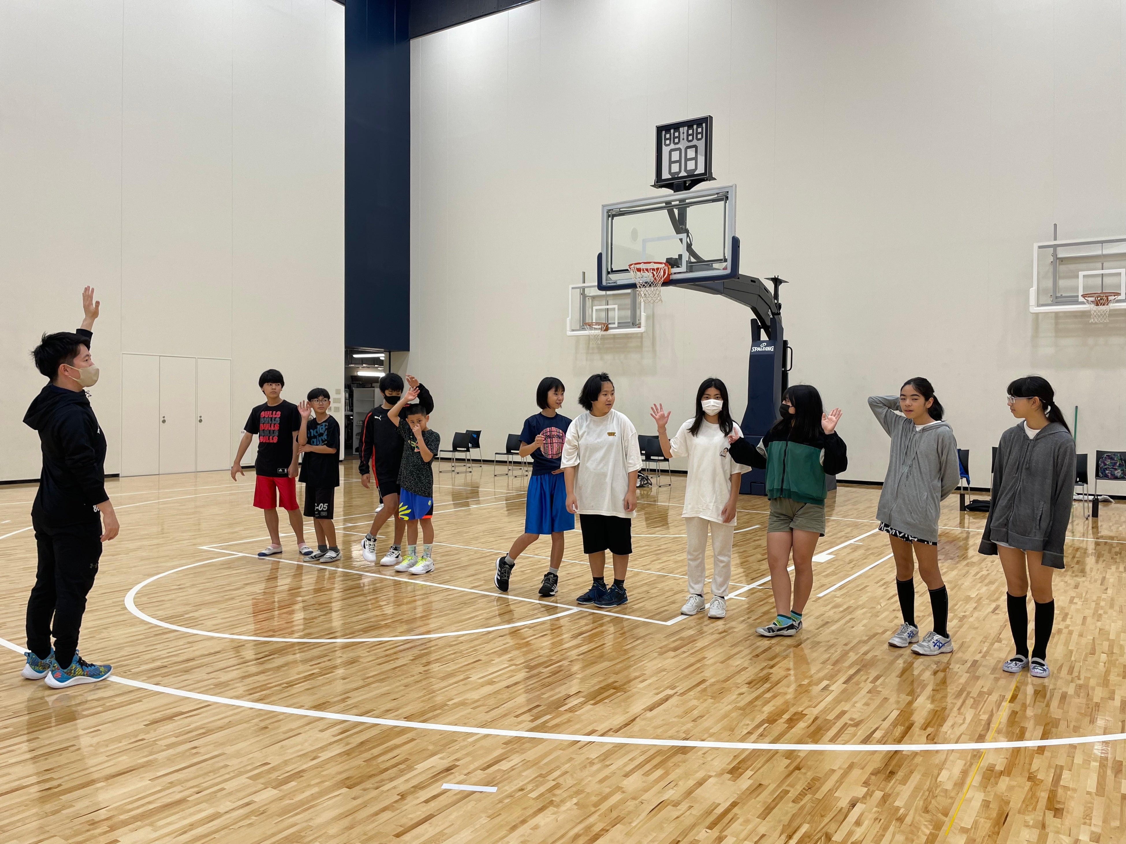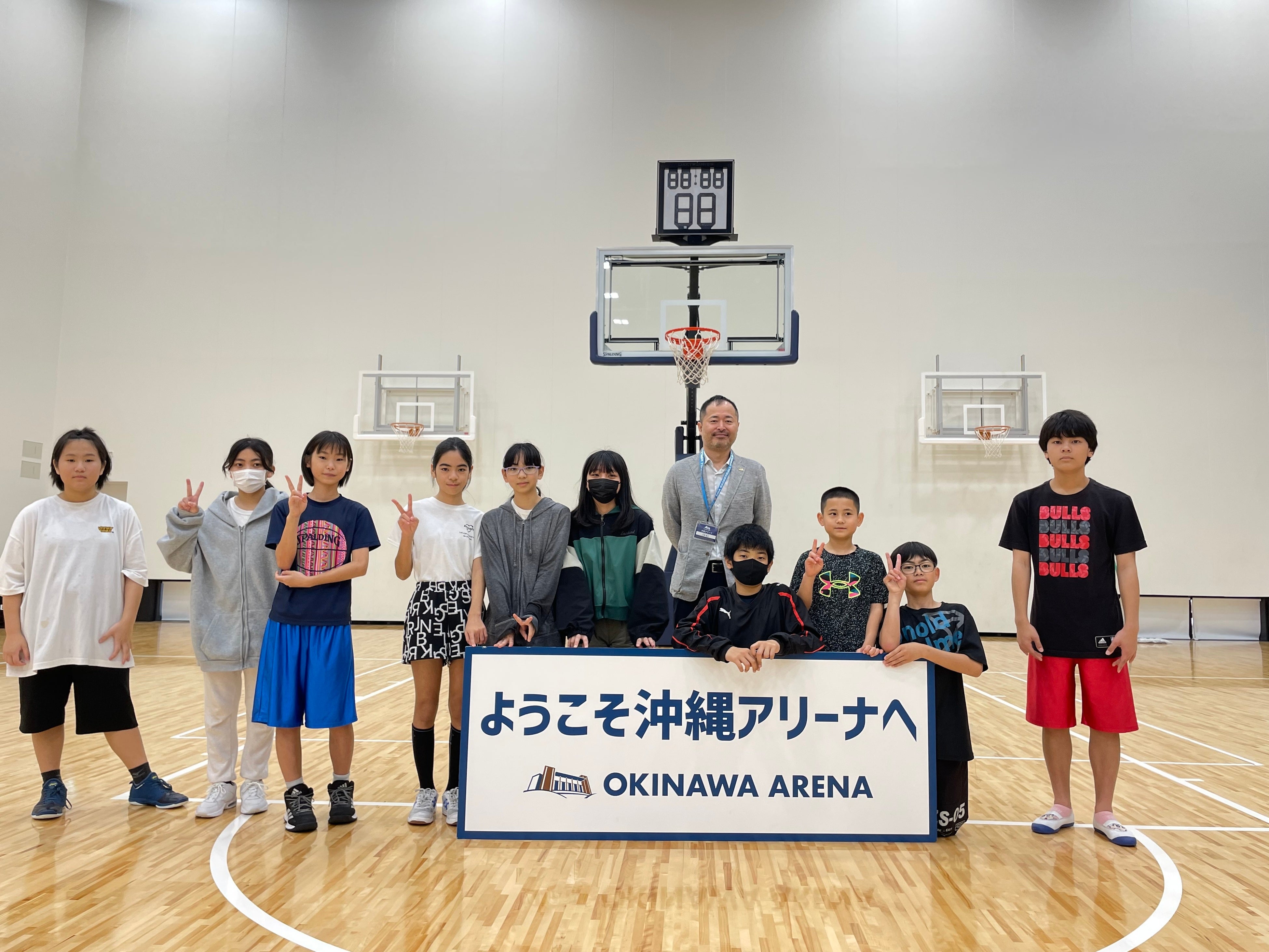 当日は「体験学習施設やまっち」から小学校高学年の10名にご参加いただきました。また、沖縄スポーツアカデミー株式会社からキングスアカデミーのコーチが指導にあたったほか、沖縄アリーナ株式会社からは片野竜三取締役が参加しました。