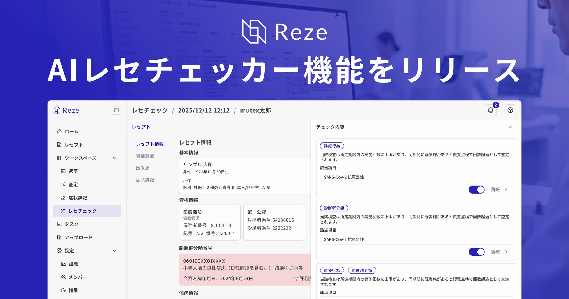 医療機関向けAIレセプト業務支援SaaS「Reze(レゼ)」を提供する株式会社mutexは、レセプト点検業務における査定・返戻リスクの見落としを防ぎ、確認作業の効率化を支援する「AIレセチェッカー機能」を新たにリリースしました。