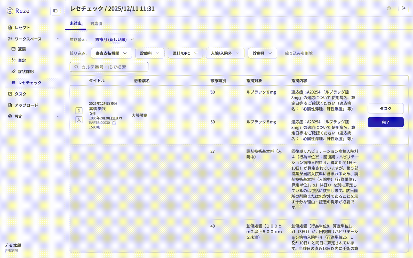 こうした機能群を相互に連携させることで、点検・修正・対応・再請求までの一連の業務フローをReze上で完結できる環境を整備し、Rezeが目指す「レセプト業務の完全自動化」に向けた開発を段階的かつ着実に進めてまいります。