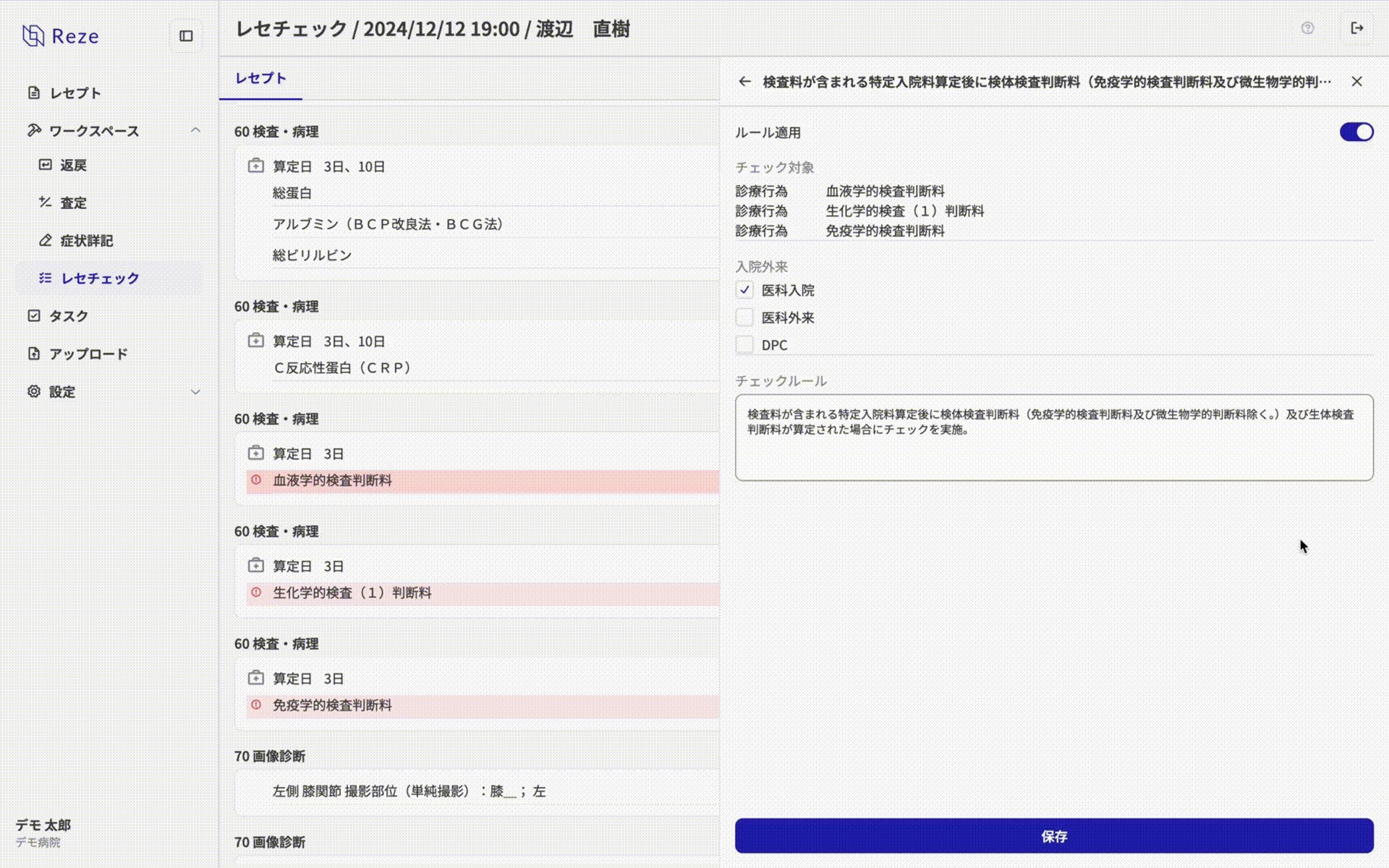 本機能は、従来のレセプトチェッカーで課題となっていた「警告が多すぎて点検に時間がかかる」「チェッカーのカスタマイズに工数がかかる」といった点に対応し、点検業務の工数を大幅に削減しながら、高い精度でレセプトの点検を行います。
