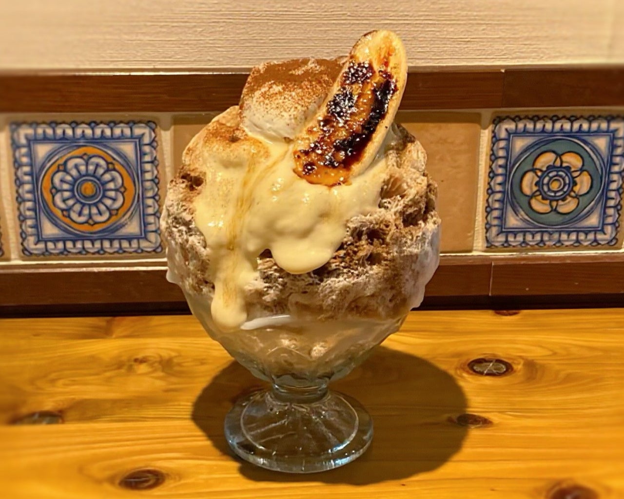 沖縄県産の希少なアップルバナナを贅沢に使用し、大人のティラミス風かき氷に仕上げました。リンゴのような爽やかな酸味ともっちりとした濃厚な甘みが特徴のアップルバナナ、マスカルポーネのコク、自家製コーヒーシロップのビターな味わいをお楽しみください。