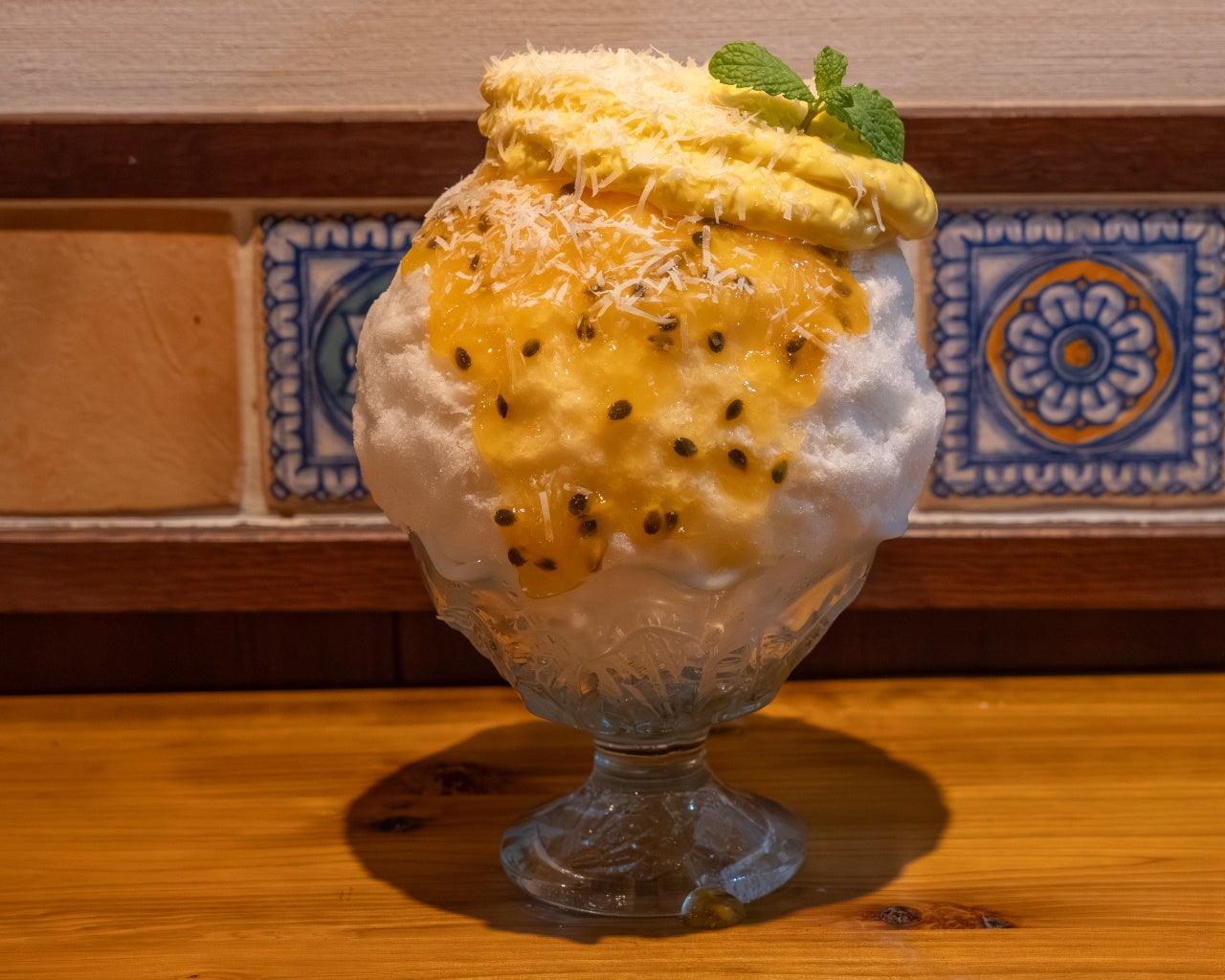 手がけるのは、日本の和菓子職人であり、かき氷界の匠・江良保正。数々の名店で培った技術をもとに、素材や温度・湿度の状態を見極めながら、一杯ずつ丁寧に削り上げるその技は、まさに“氷の芸術”と称されます。