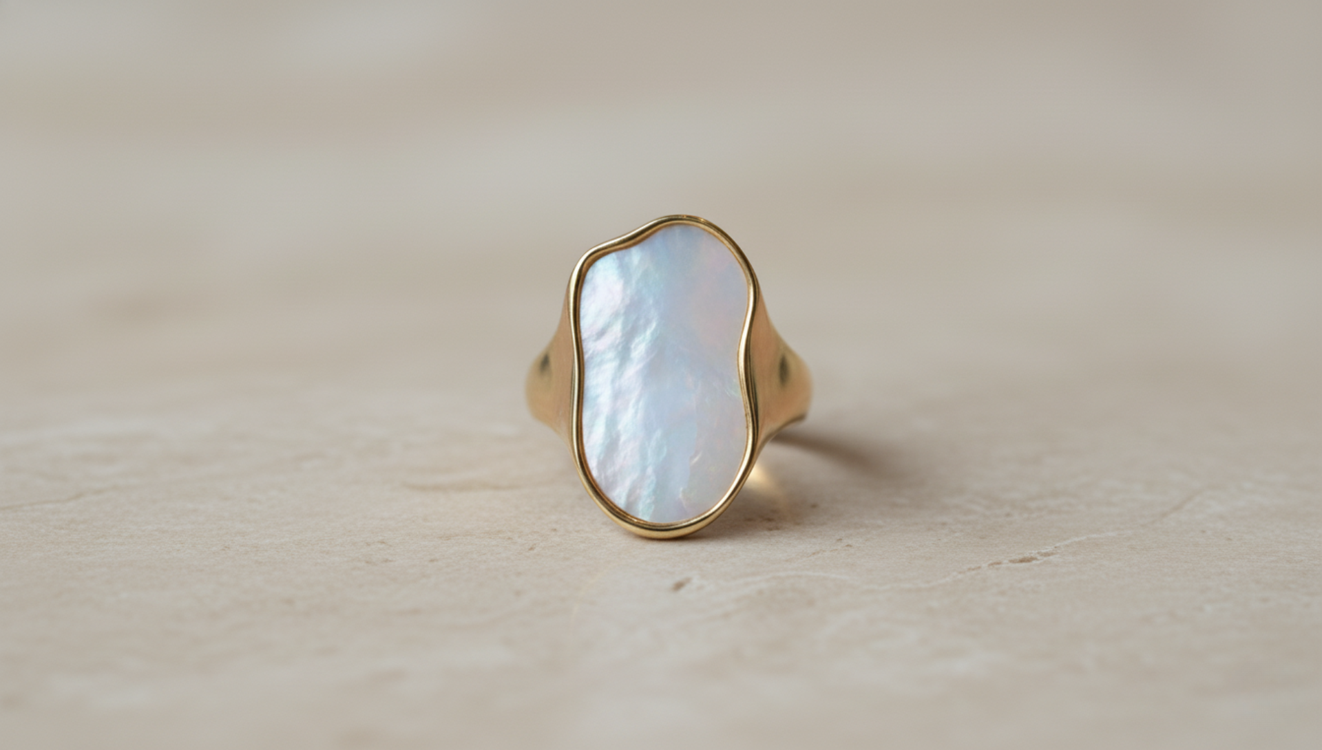 フェミニンな輝きを放つ、ゴールド×ホワイトシェルデザイン