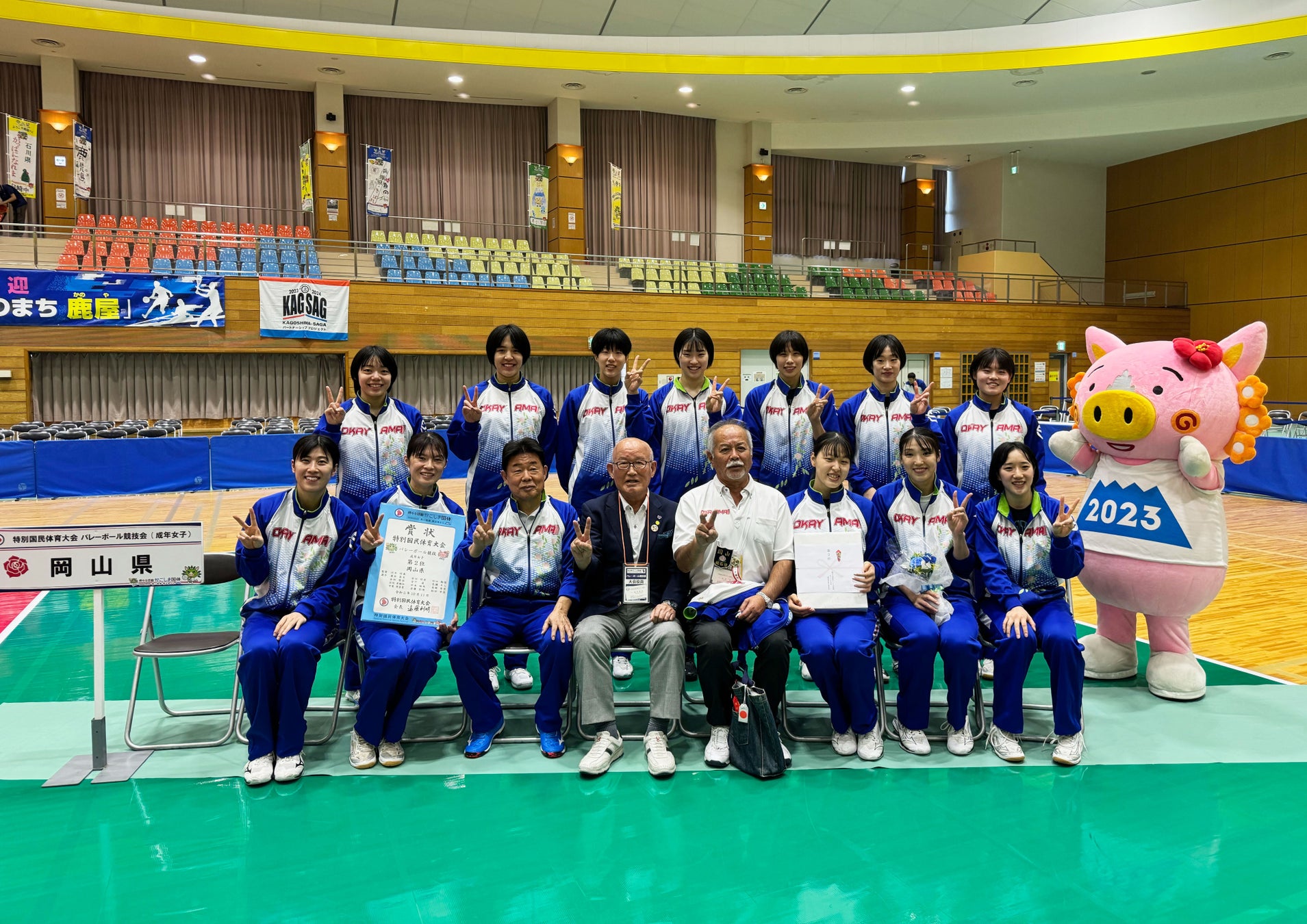 この度の受賞は、当チームが昨年10月に開催された特別国民体育大会においてバレーボール競技成年女子で岡山県代表として準優勝の成績を収めたことを評価されてのものとなります。