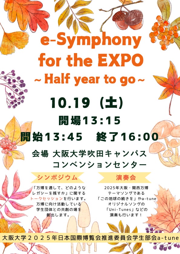 【大阪大学】万博開催約半年前!大阪大学2025年日本国際博覧会推進委員会学生部会 a-tuneが「e-Symphony for the EXPO ~Half year to go~」を開催します。
