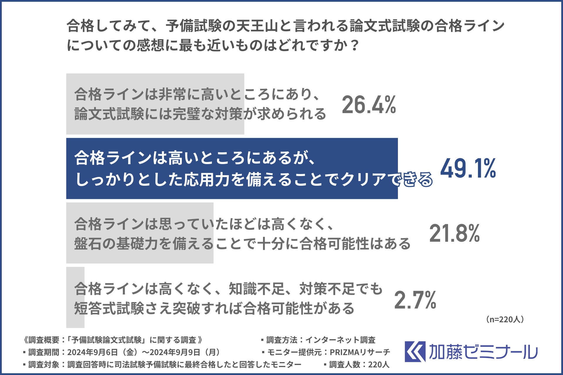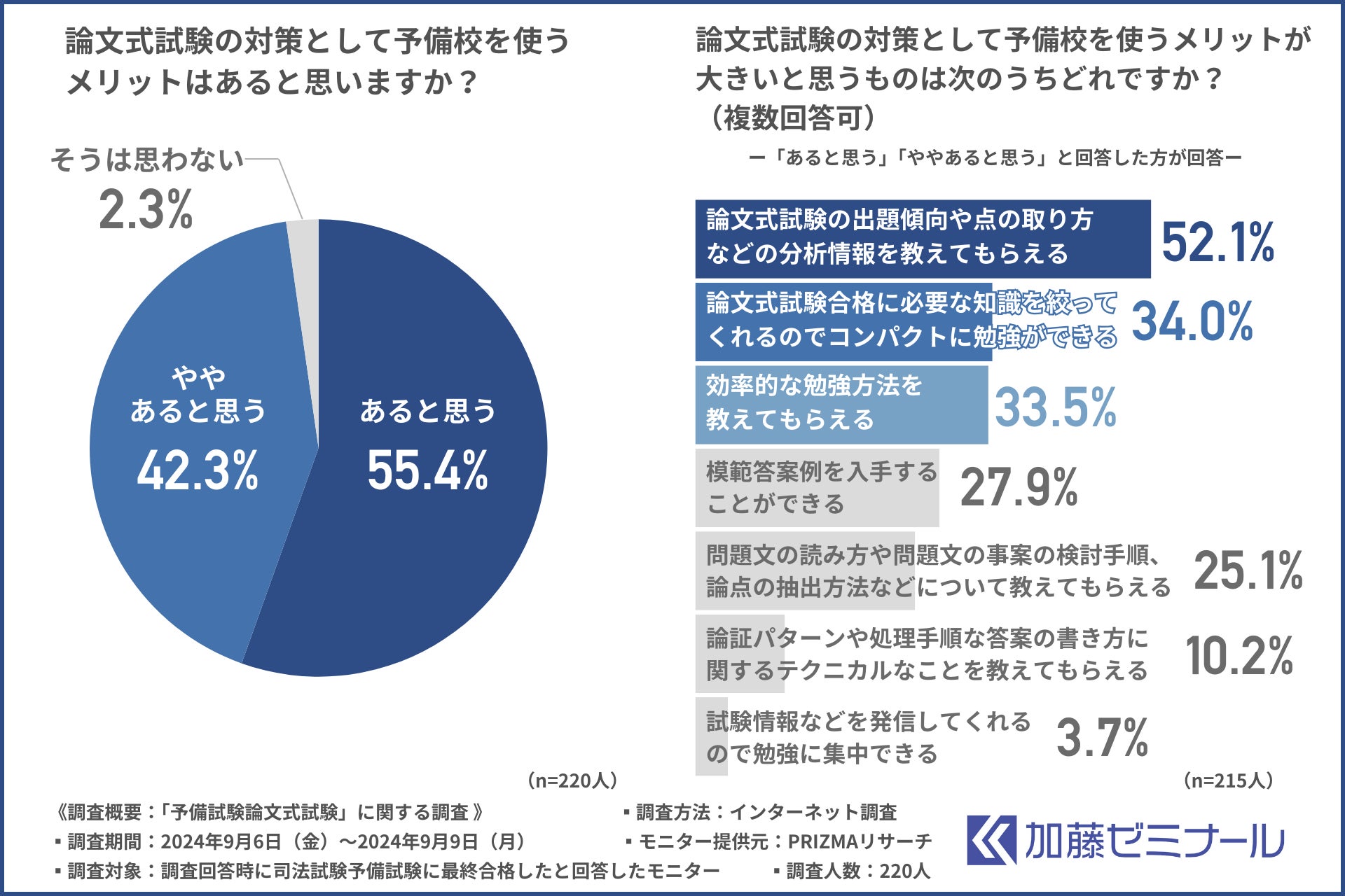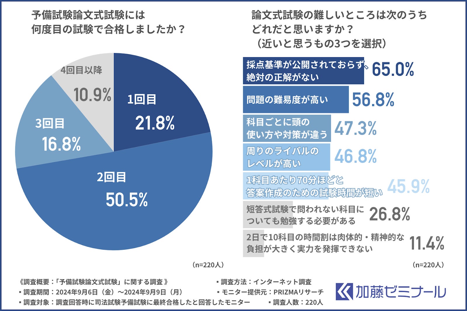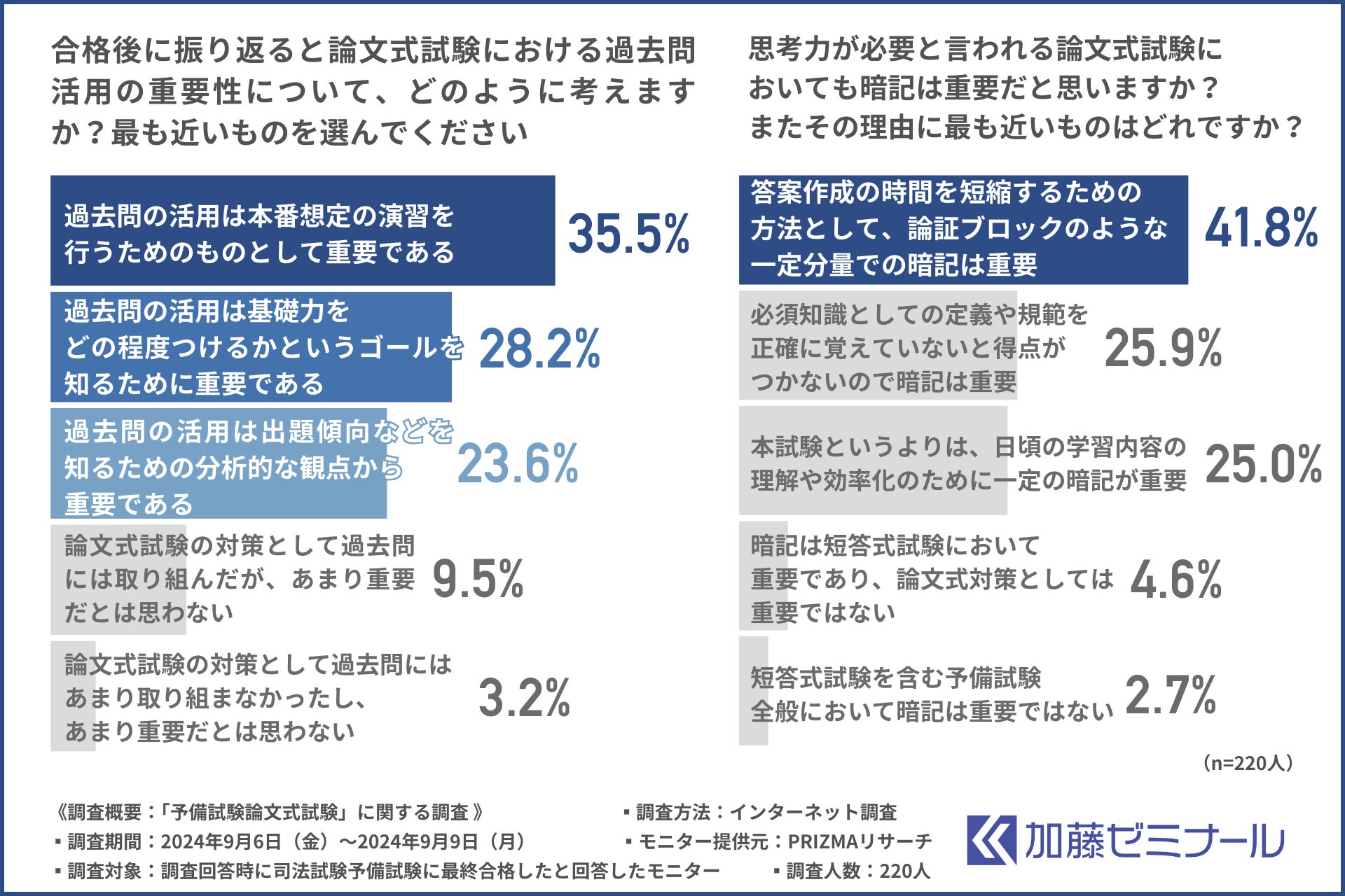 株式会社加藤ゼミナール(本社所在地:東京都港区、代表取締役:加藤 喬)は、司法試験予備試験に最終合格した方を対象に、「予備試験論文式試験」に関する調査を実施しました。