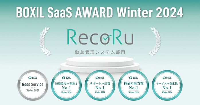 中央システム株式会社(本社:東京都新宿区、代表取締役社長:本間 匡、以下中央システム)が提供するクラウド勤怠管理システム「RecoRu(レコル)」は、スマートキャンプ株式会社(以下スマートキャンプ)が主催する「BOXIL SaaS AWARD Winter 2024」の勤怠管理システム部門で「Good Service」「初期設定の容易さNo.1」「サポートの品質No.1」「料金の妥当性No.1」「サービスの安定性No.1」に選出されました。