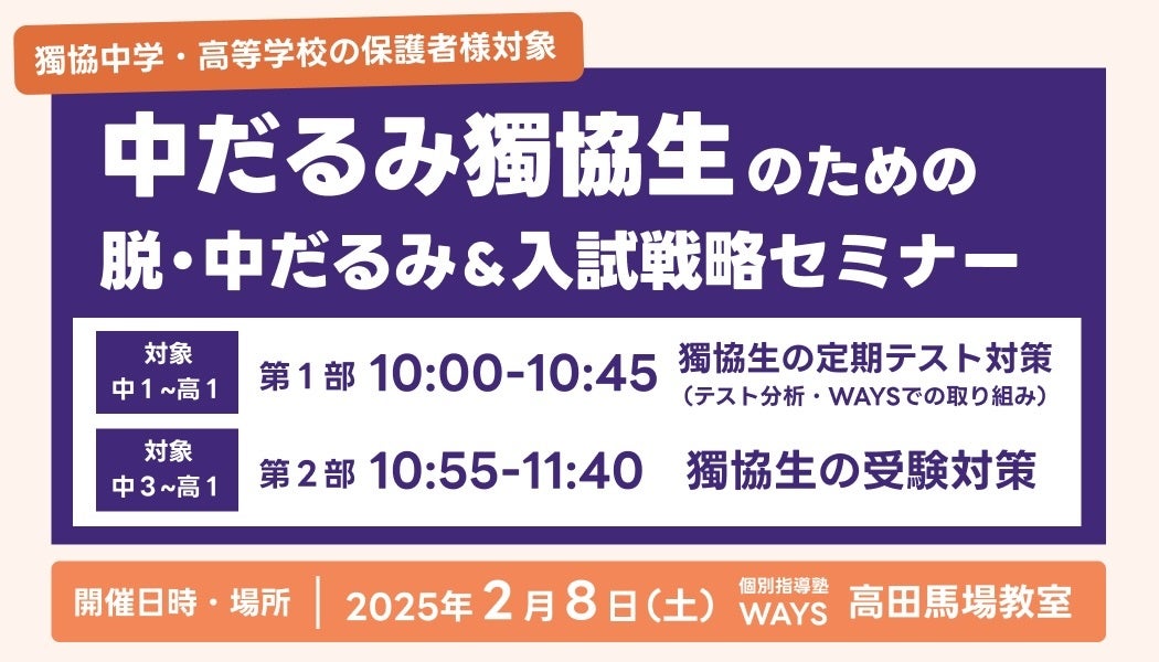 【獨協中学・高等学校の保護者様対象】中だるみ獨協生のための脱・中だるみ&入試戦略セミナーを開催(主催:中高一貫校専門 個別指導塾WAYS)