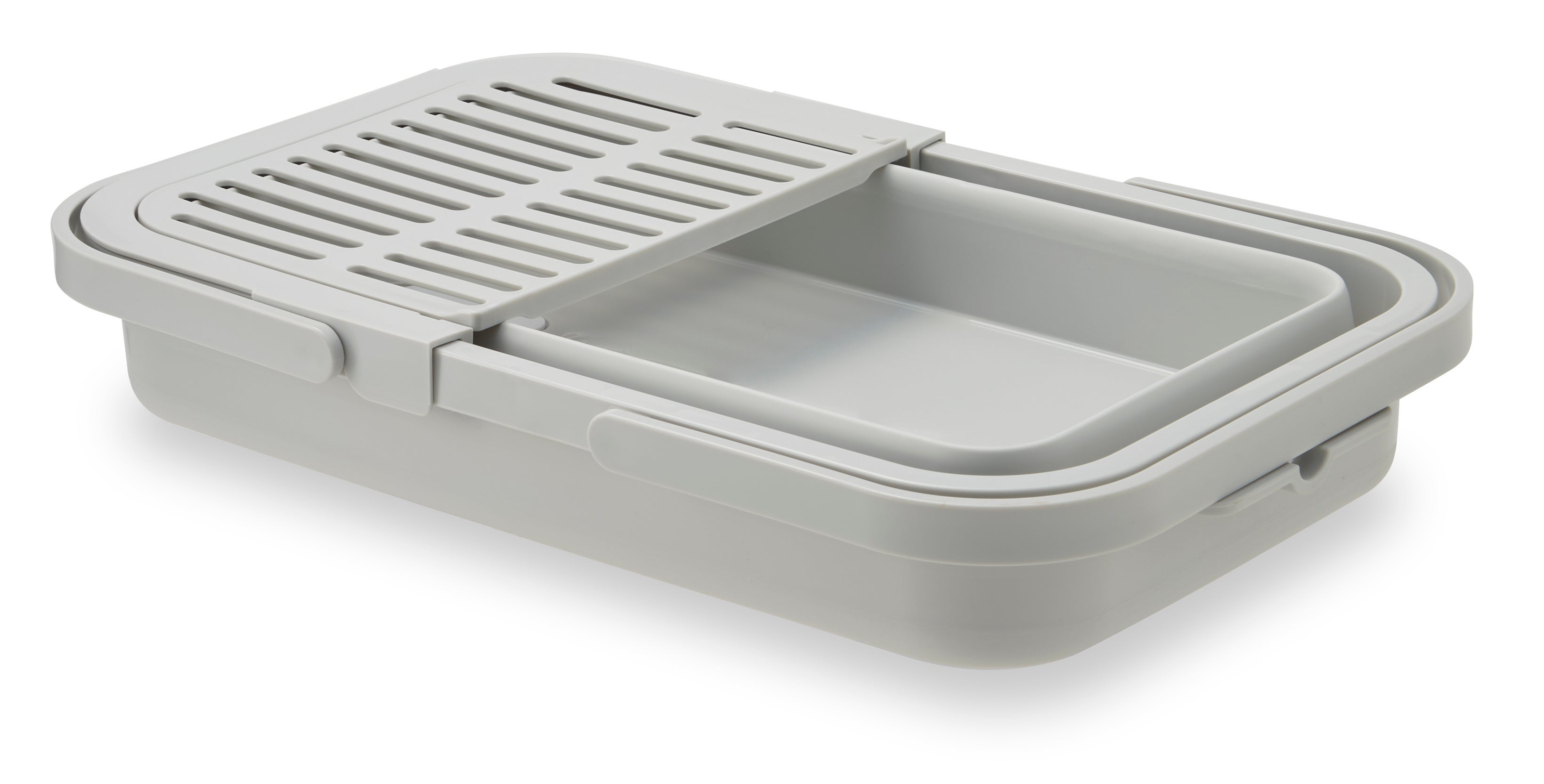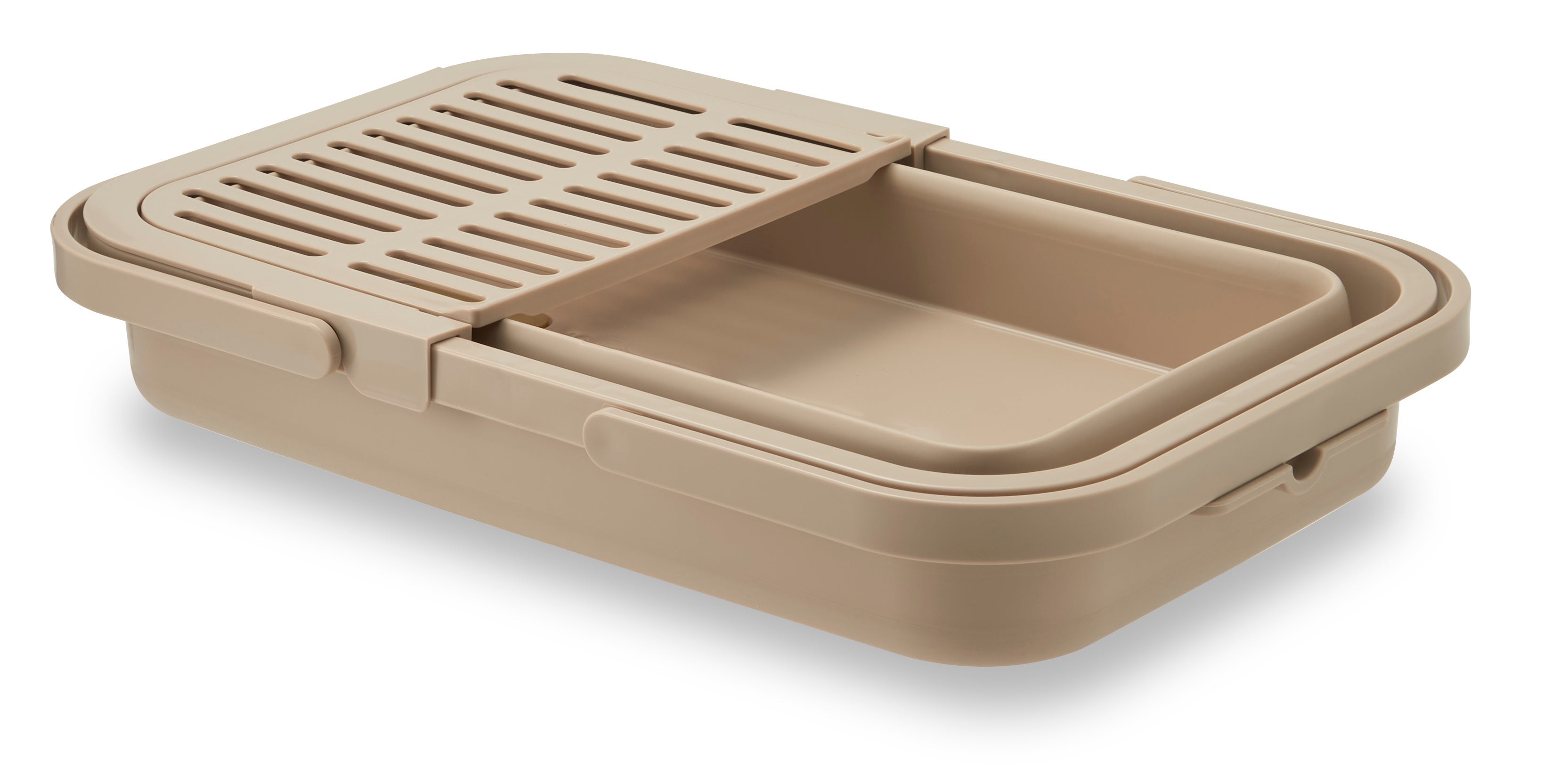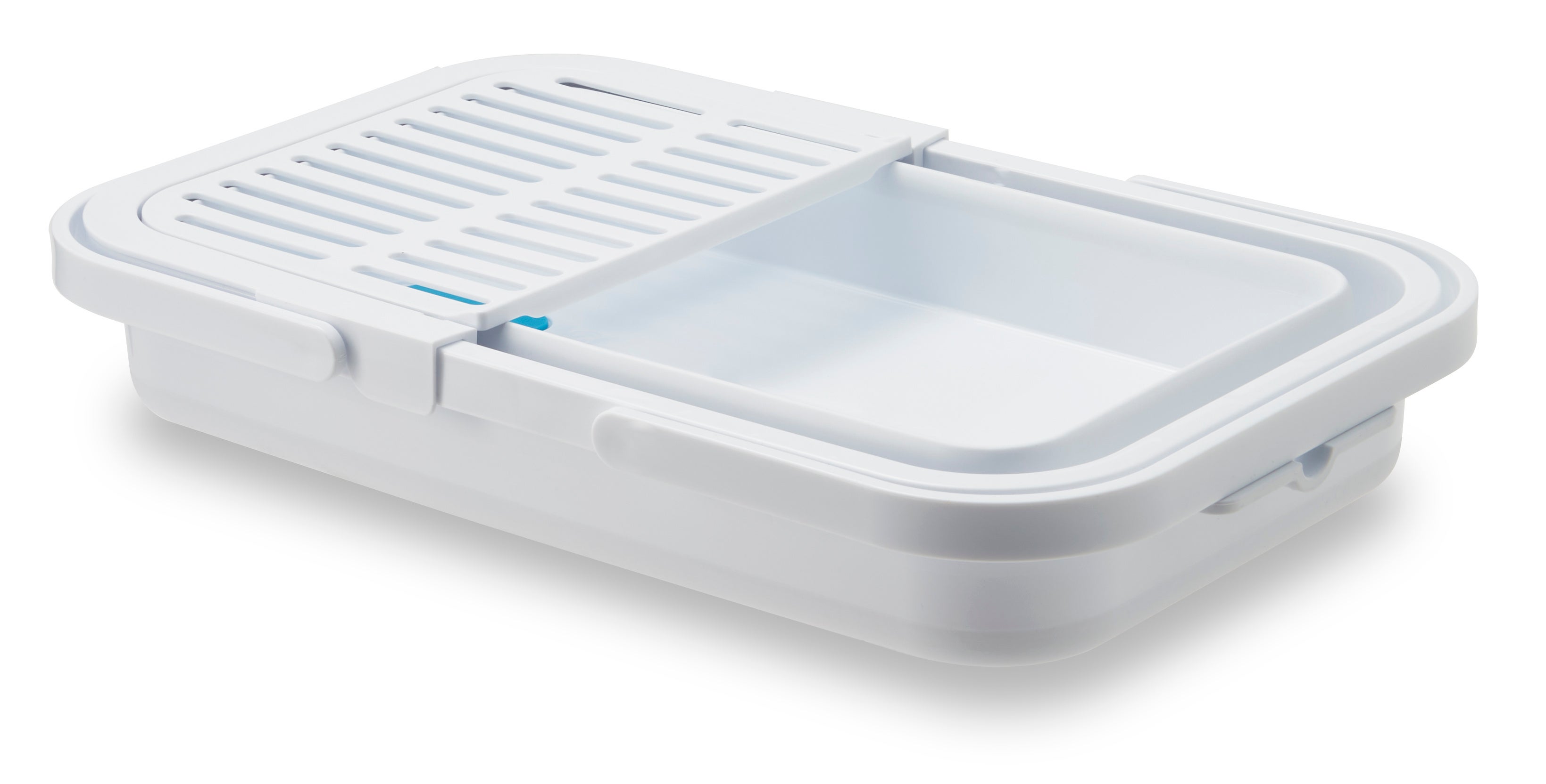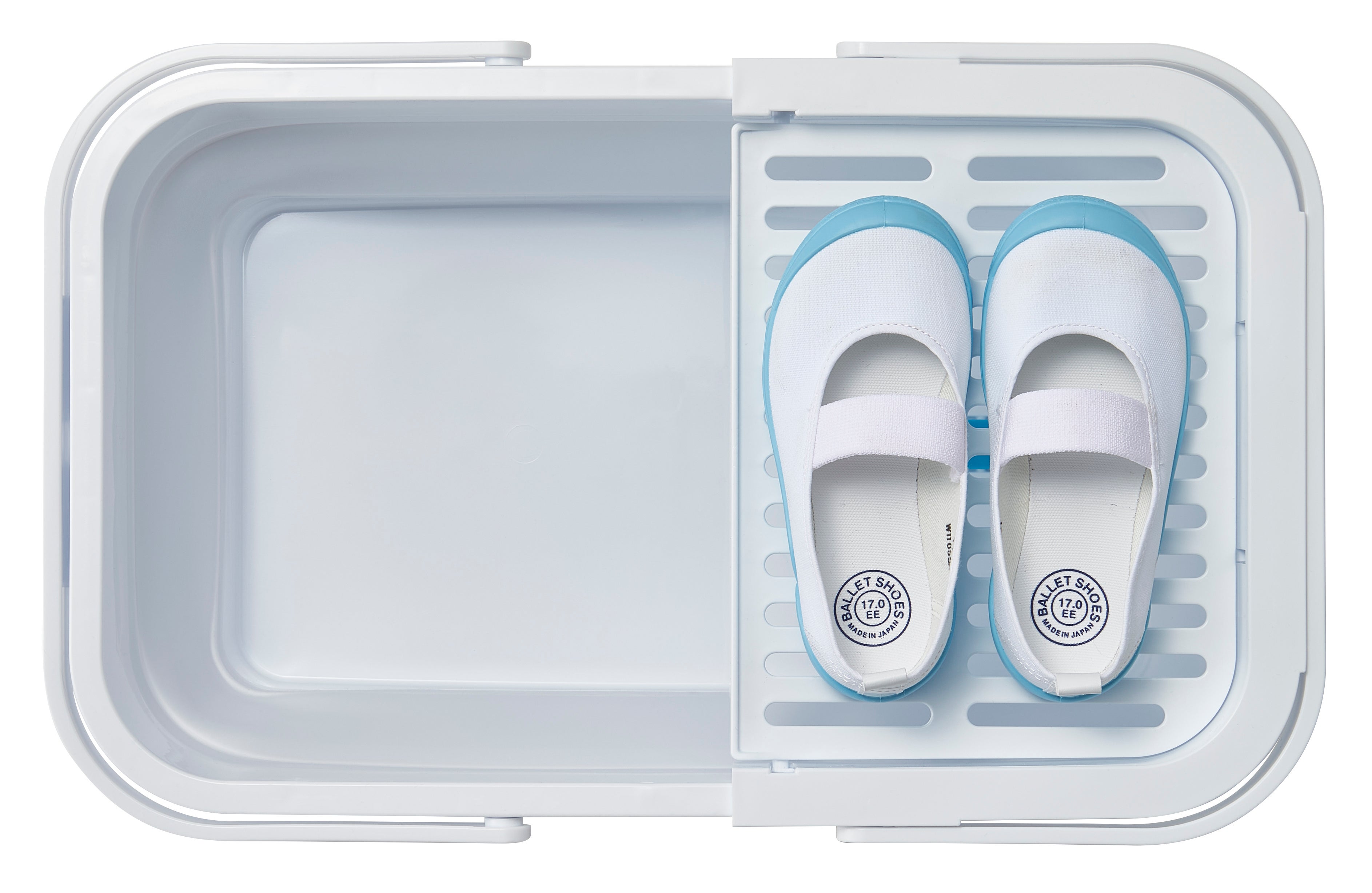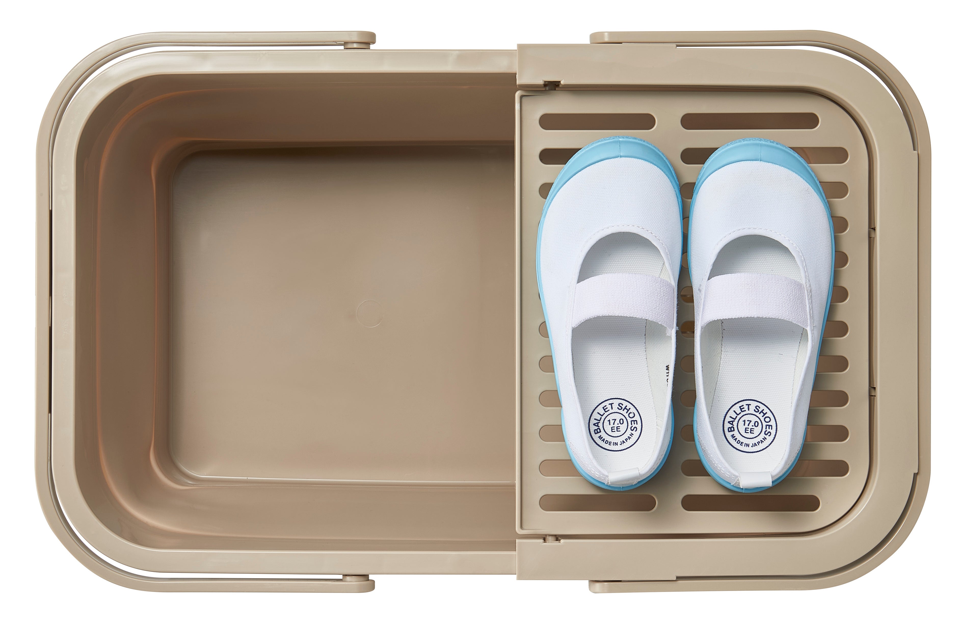 バスケットにトレーが付いているので、これまで仕方がなく床に置いていたものを衛生的に置くことができます。