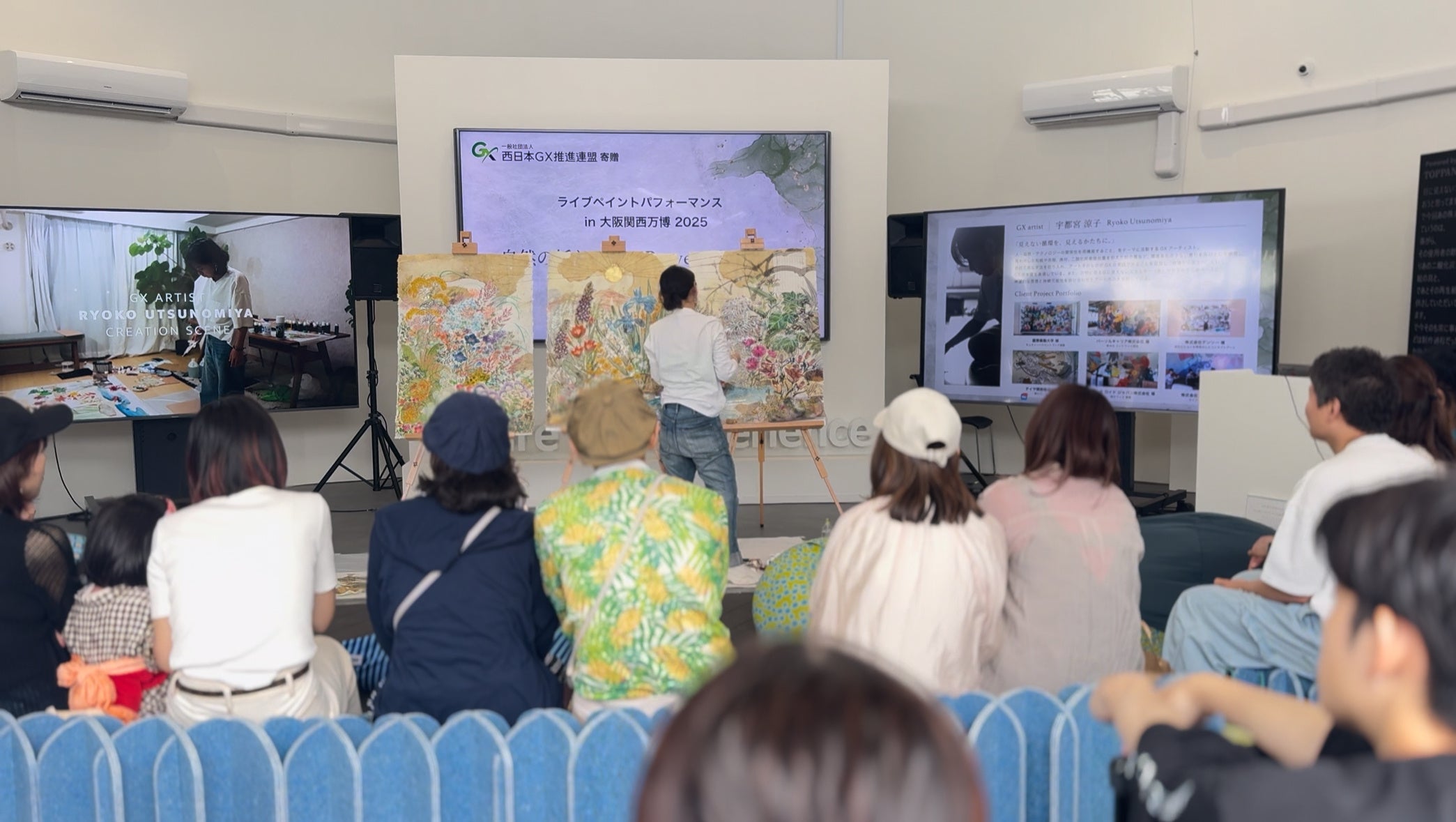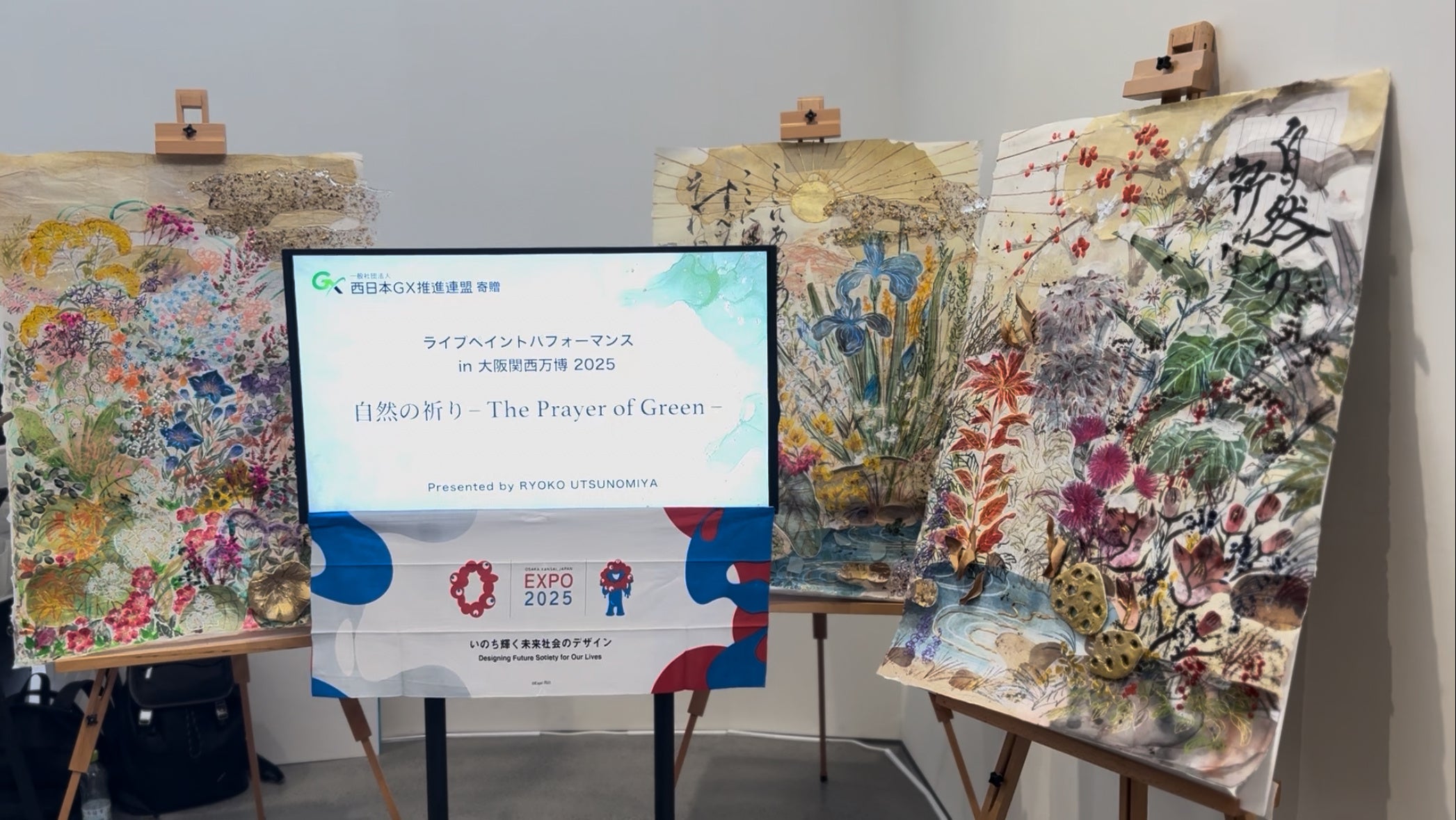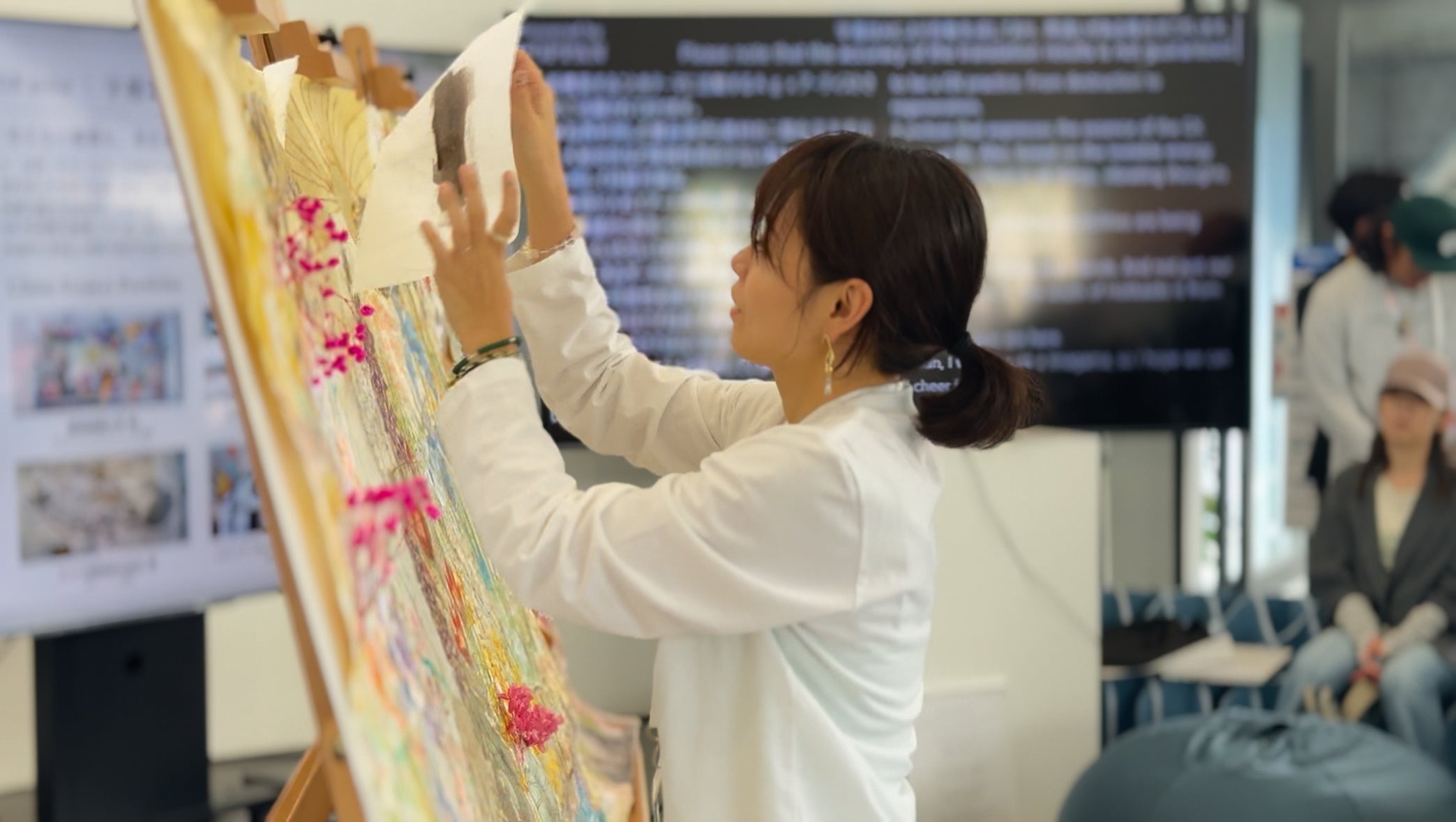 5月31日〜6月7日に開催された大阪・関西万博「フューチャーライフヴィレッジ」内GXアートにて、捨てられるはずだった素材が「いただききる」思想からGXアートの画材として命を吹き込まれた。