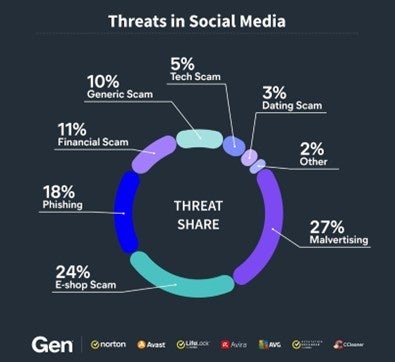 ソーシャルメディア全体における詐欺はマルバタイジングが最多