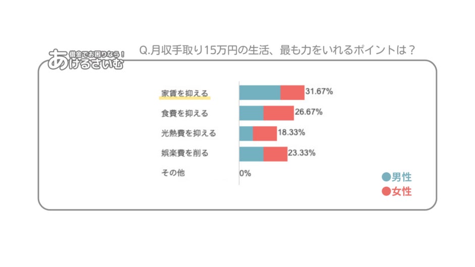月収手取り15万円で生活しなければならない場合、最も力をいれるポイントは?