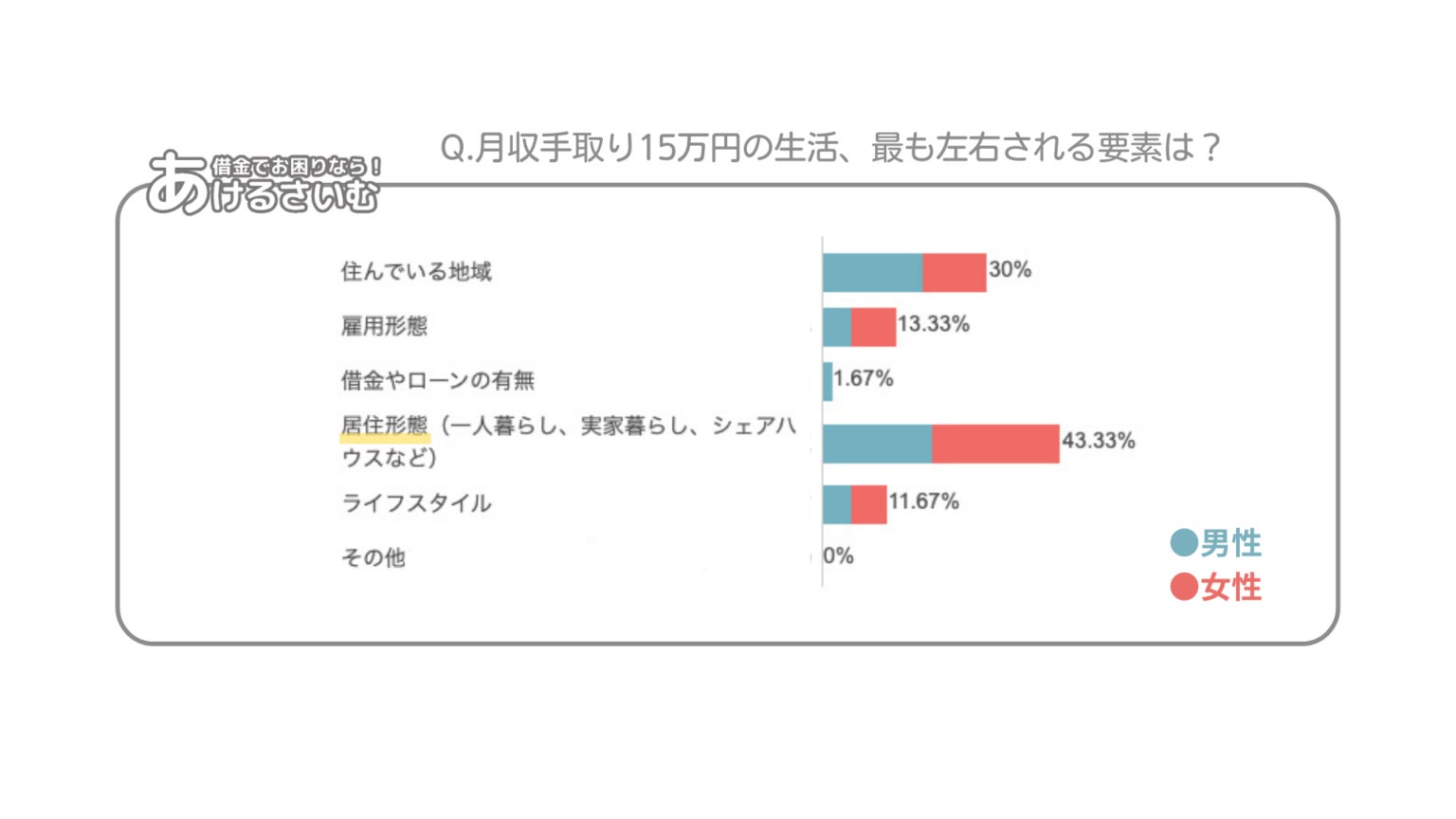 月収手取り15万円で生活できるかどうかにおいて、最も左右される要素は?
