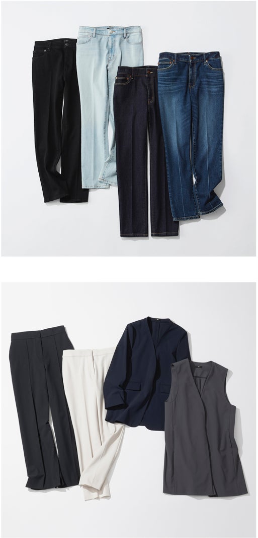 プラステの定番アイテムである美脚パンツ「PLUS STYLEシリーズ」は、これまでコットンブレンド・リネンブレンド・ウォームリザーブと様々な素材で展開しておりましたが、デニム生地のパンツを2024年の春夏コレクションより新発売いたしました。好みのスタイルやシーンに応じて幅広い着こなしができるよう、「スティックジーンズ」と「ハイライズワイドジーンズ」の2種類のシルエットをご用意。上品な印象に導くセンタープレスは、美脚効果はもちろん、洗濯しても消えにくいため美脚効果が続きます。また、ストレッチ性のある生地を採用することで、動きやすさときちんと見えが叶う、プラステならではの“美脚ジーンズ”に仕上げ、発売以降お客様からも好評をいただいております。