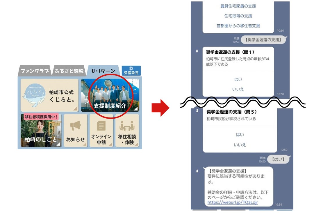 ・ご自分が対象となるU・I ターン者向け支援制度の有無を、チャットボットを通じてセルフチェックすることができます。