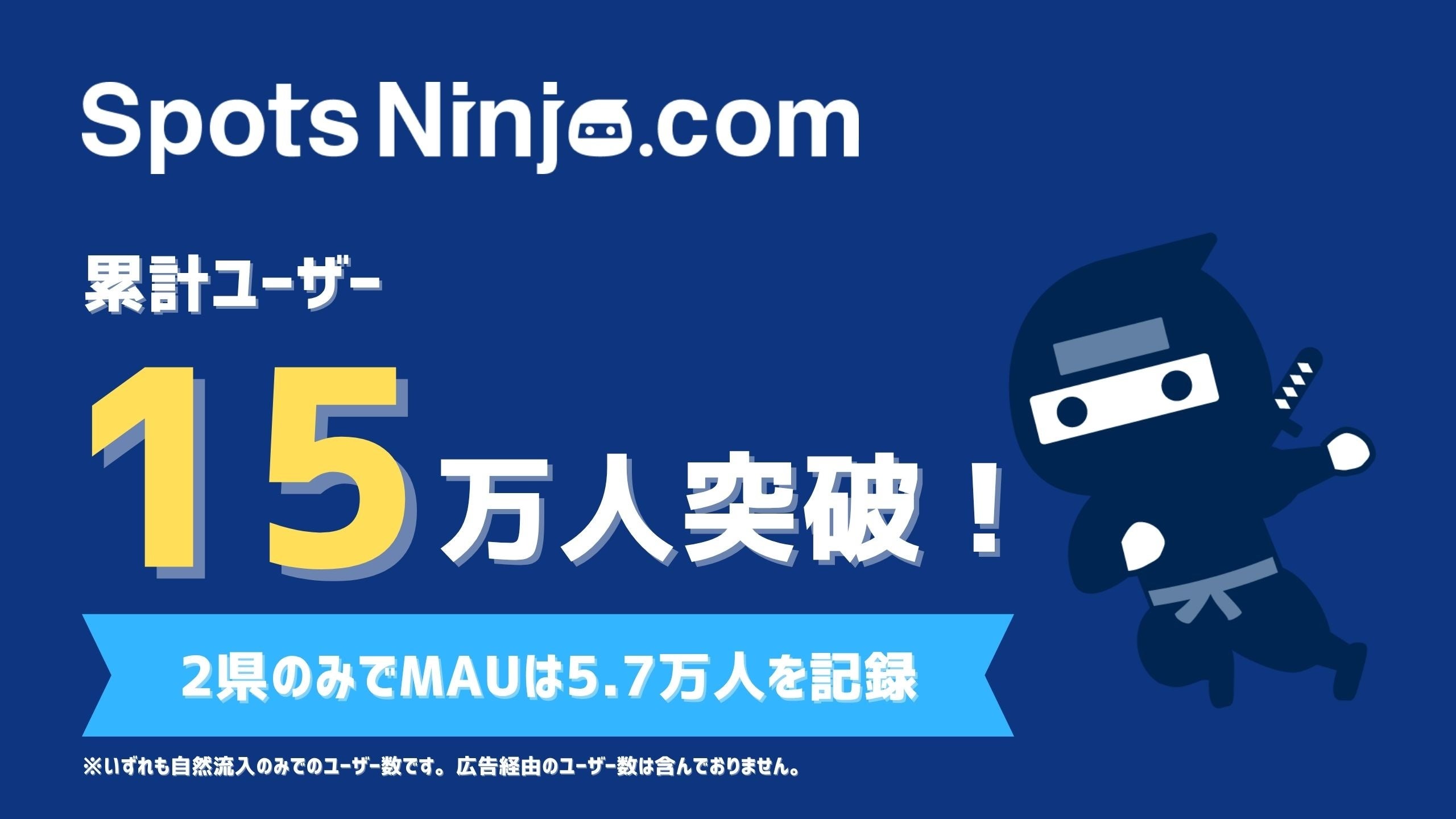 イオリア株式会社(本社:東京都渋谷区、代表取締役:松原元気)は、地域特化型情報アプリ「SpotsNinja(スポッツニンジャ)」の累計利用ユーザー数が15万人を突破し、月間利用者数(MAU)が5.7万人 を達成したことをお知らせいたします。福岡県・広島県の2県限定提供にもかかわらず、これまで 広告ゼロ の完全オーガニック流入のみで着実に成長を遂げてきました。