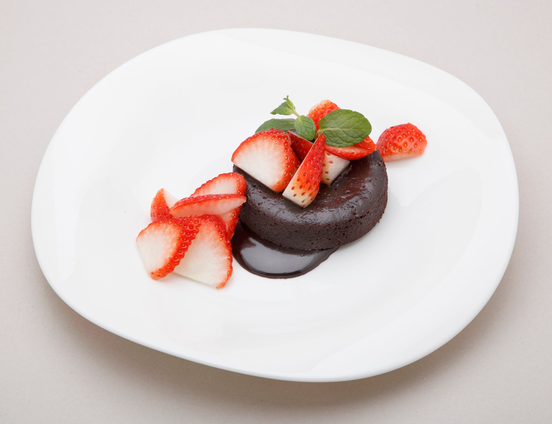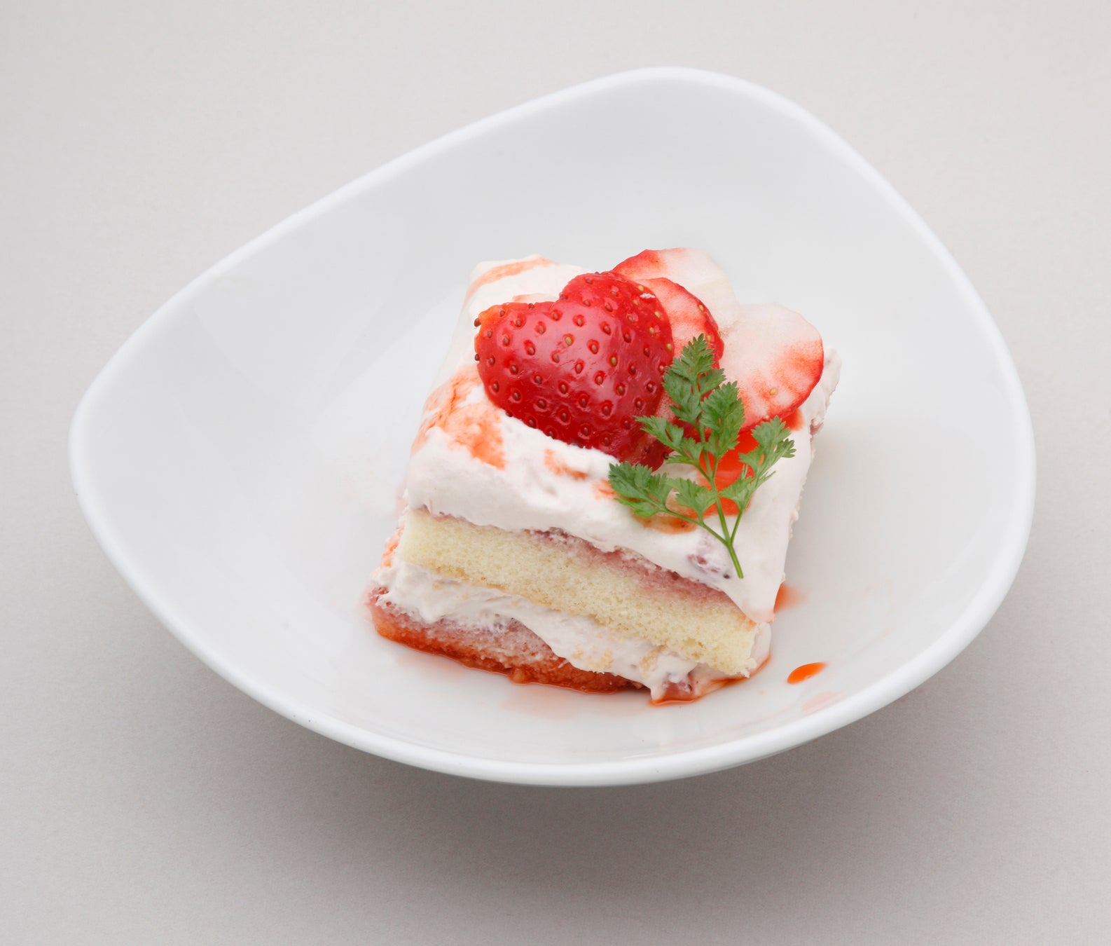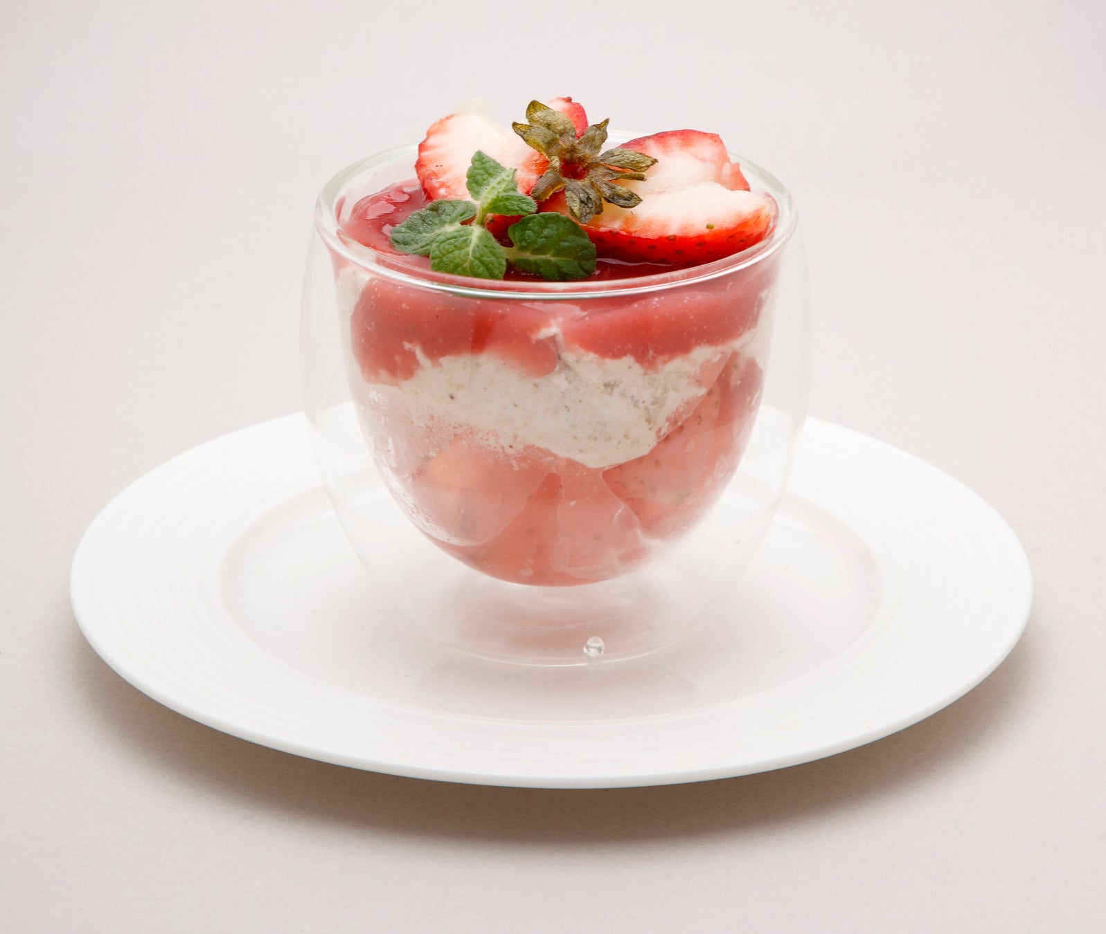 とちぎのいちご“とちあいか”の良さを生かしたくて、シンプルにゼリーで寄せました。その上にそば粉のムース、とちあいかのソースと果実を飾りました。とちあいかのゼリーとそば粉のムースの味と食感の違いは、口の中に新鮮な感動を呼び起こします。