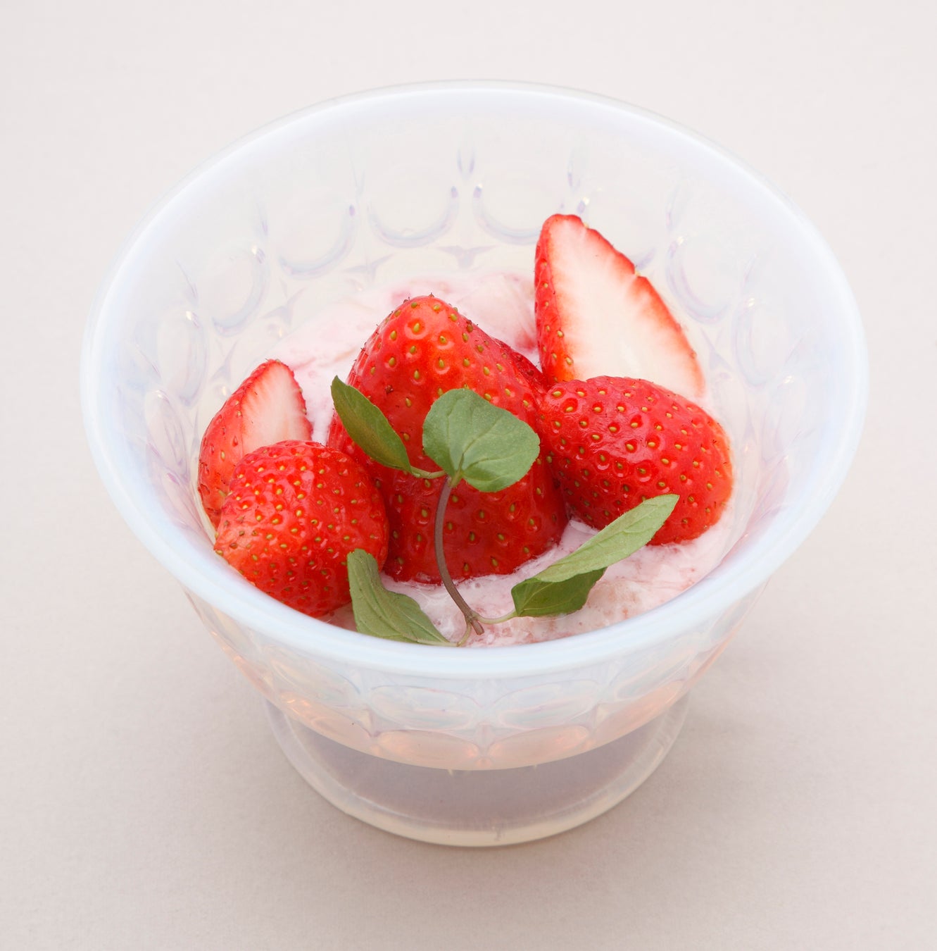当店の人気デザート、ふわふわな口溶けの良いピン(台湾かき氷)に、フレッシュなとちあいかをたっぷり飾りつけ、相性抜群の練乳とベリーソースをかけました。甘酸っぱいとちあいかの味わいと、きめの細かいピンの食感が楽しいデザートです。