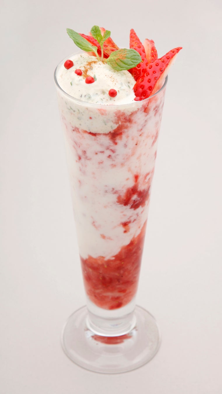 フレッシュなとちあいかの甘酸っぱさに、苺のアイス、キャラメルブールサレを組み合わせました。