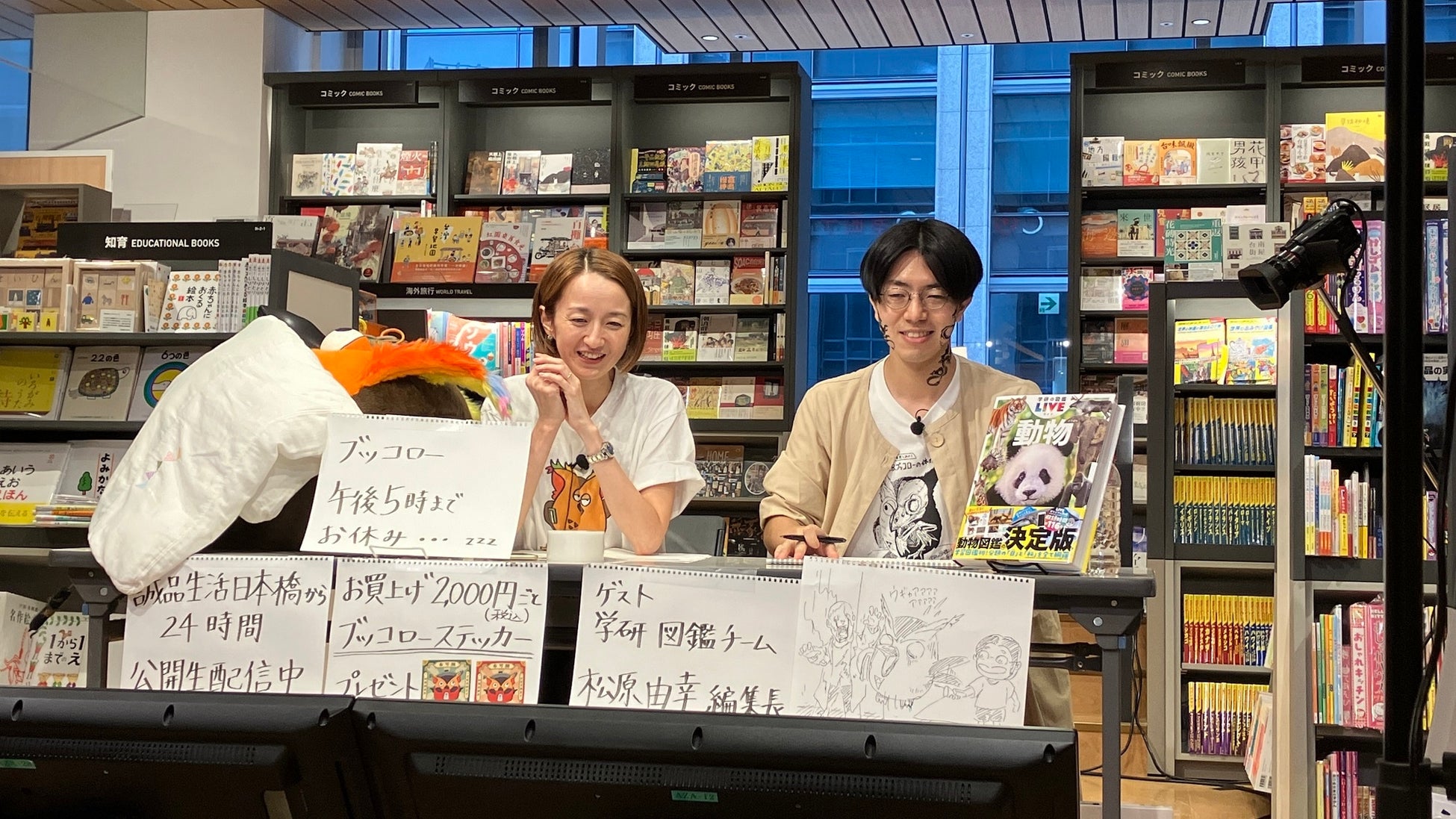 「有隣堂しか知らない世界」に出演したゲスト12名や、当社代表取締役社長 松信健太郎はじめとする有隣堂のスタッフ5名の計18名が時間帯別で登場し、チャンネルMC R.B.ブッコローとのトークやゲーム対決、ライブペイントが繰り広げられました。視聴者からチャット欄にリアルタイムで書き込まれるコメントに、ゲストやMCが応答する形でインタラクティブな体験をお届けしました。配信スタジオは誠品生活日本橋の売り場スペースを使用し、現地の来訪者は、トークの観覧や、裏方スタッフの様子も見学できました。同時に、遠方の視聴者や、深夜帯に来店できない方々もオンライン上でイベント体験を共有する機会が提供されました。