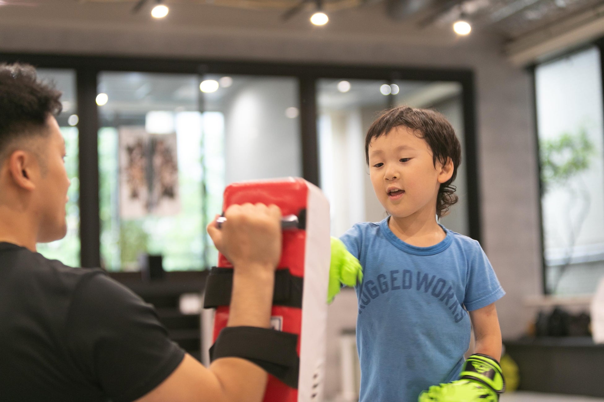 キックボクシングには「打つ」「蹴る」という動作がありますが、これらは、こどもたちにとって大切な基礎運動でもあります。