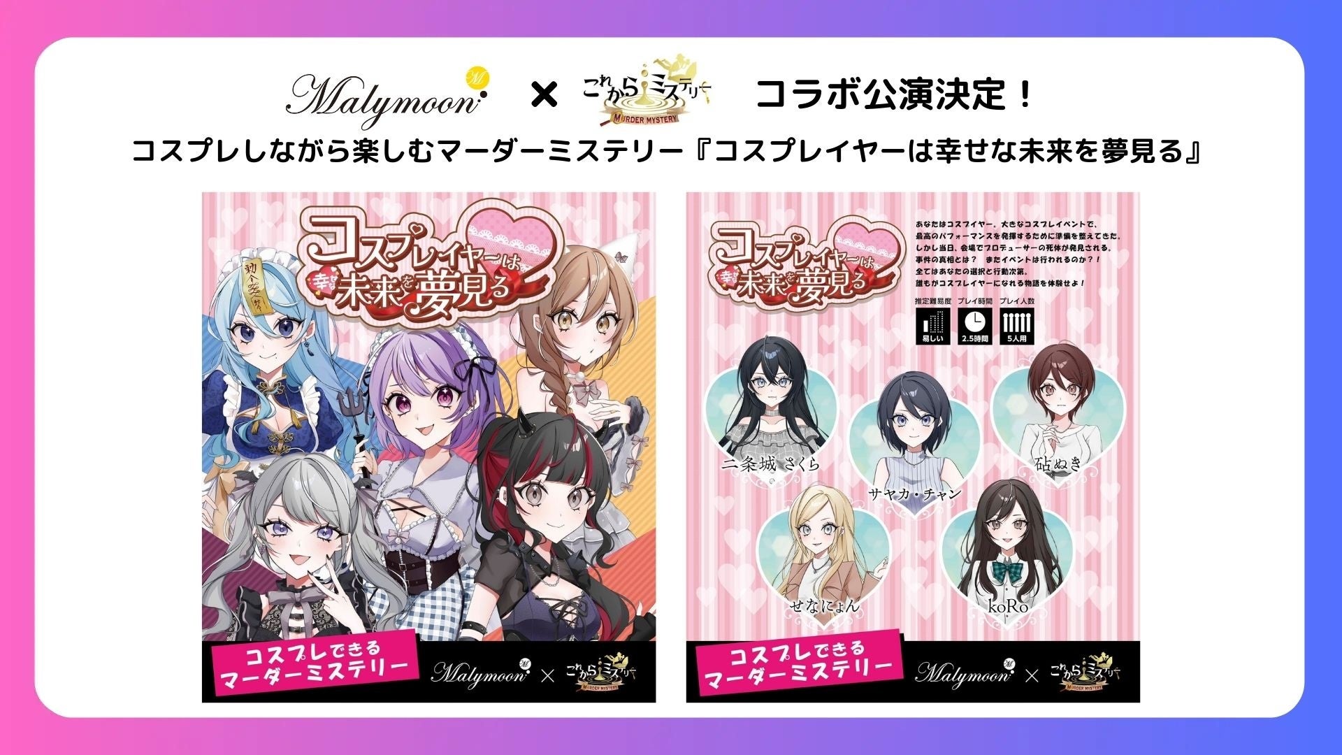 これからミステリー✖️Malymoon コラボ公演決定!コスプレしながら楽しむマーダーミステリー『コスプレイヤーは幸せな未来を夢見る』11月1日より公演開始!