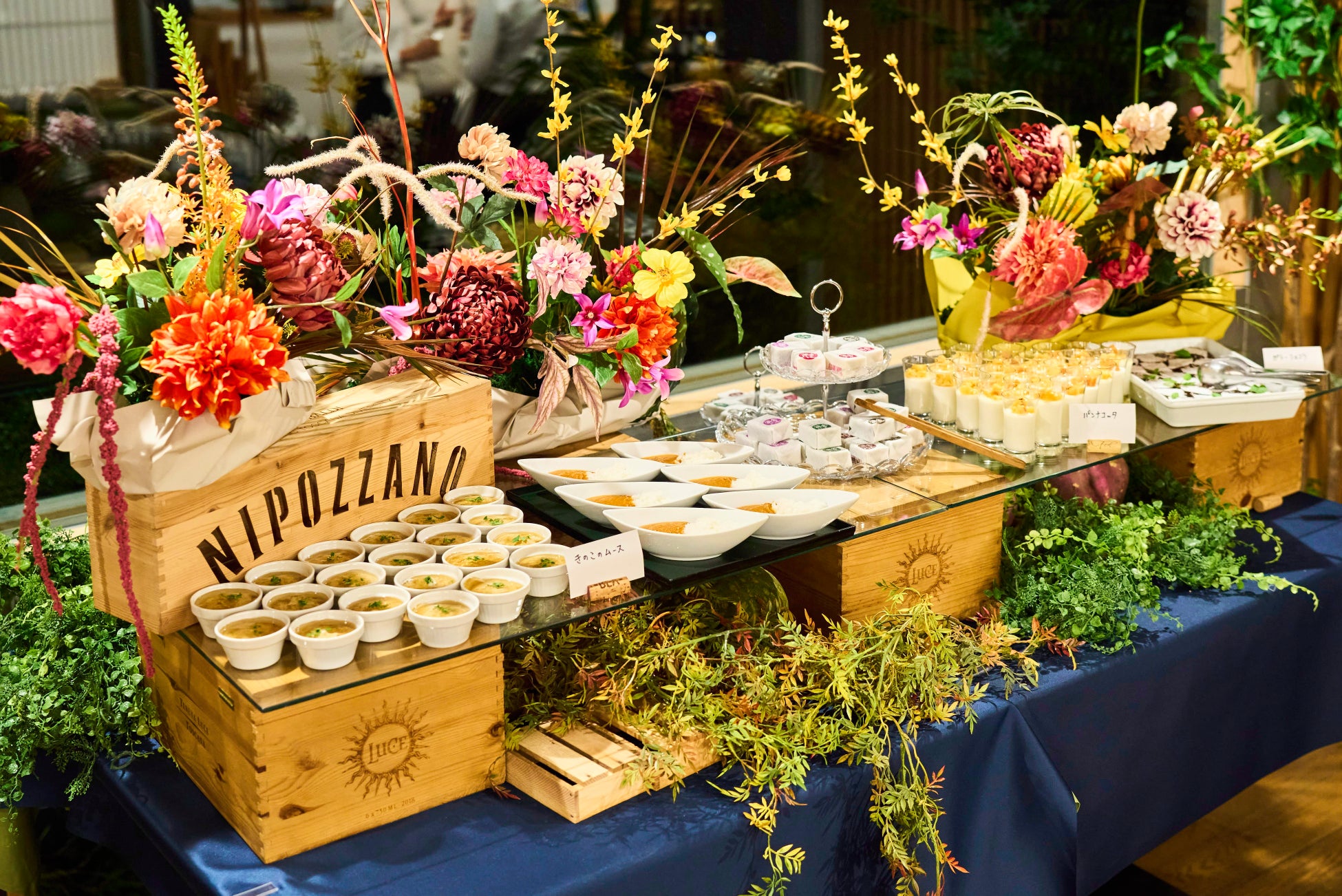 ディナーは、カジュアルガーデンスタイルにて提供いたします。鎌倉のイタリアンの名店、リストランテ ラ・ルーチェの小川真シェフ監修のもと、ビュッフェ形式にて華やかに展開します。ディナーはアルコールを含めたフリードリンク制でご提供します。