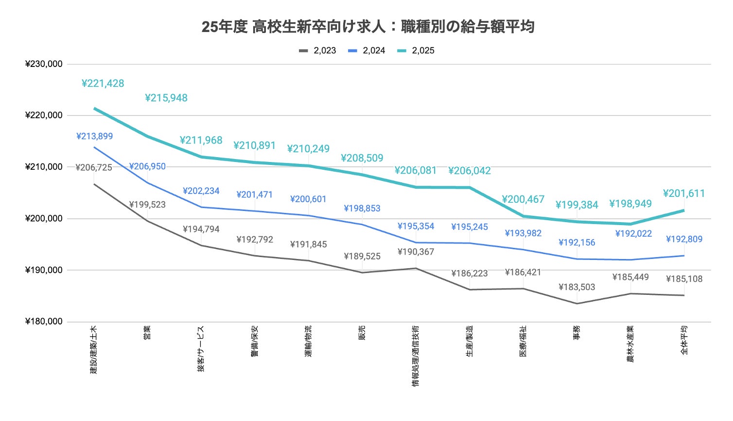 【高卒就活速報】高卒求人の給与が20万円突破。26卒は前年比+8,802円/月(105%) で平均201,611円。建設業界・大都市圏を中心に高水準傾向、休日数は前年比+2日で114.7日に