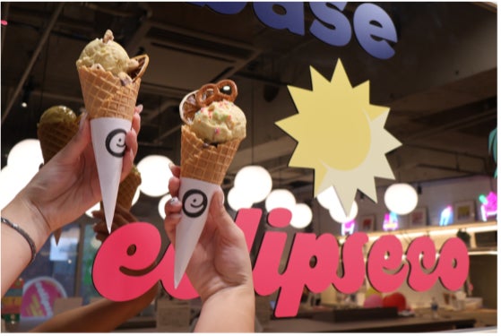 「eclipseco チョコレート」「eclipseco クッキーバター」「eclipseco マンゴーパッション」に加え、ポップアップストア限定「eclipseco ストロベリー」4つのフレーバーのスクープアイスをご用意しています。アイスには、お好きなトッピングを2種類選んで、ご自身で盛り付けを楽しんでいただくことができます。