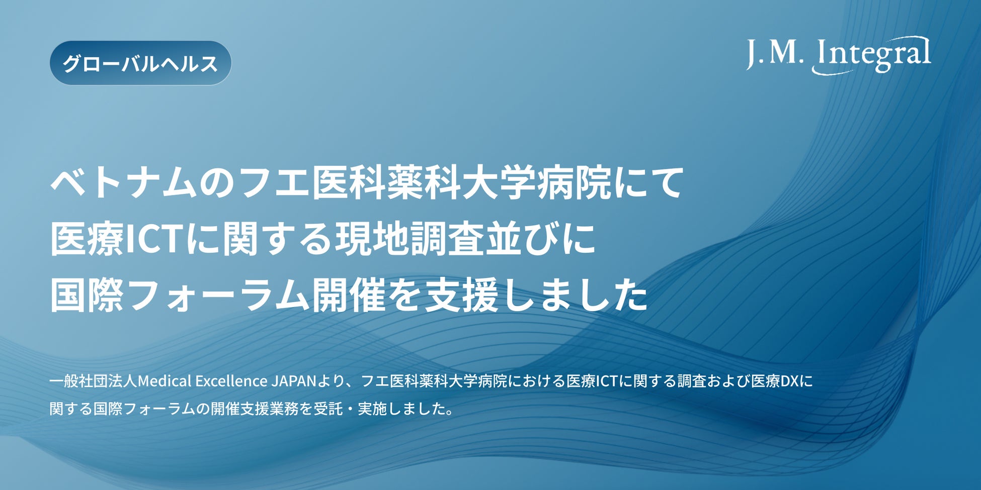 医療ヘルスケア関連サービスを手掛ける株式会社ジェイエムインテグラル(東京都港区 代表:和泉大志)は、一般社団法人Medical Excellence JAPAN(以下、MEJ)より、MExx構想(※)に基づく二国間連携の推進にあたり、フエ医科薬科大学病院における医療ICTに関する調査および医療DXに関する国際フォーラムの開催支援業務を受託・実施いたしました。
