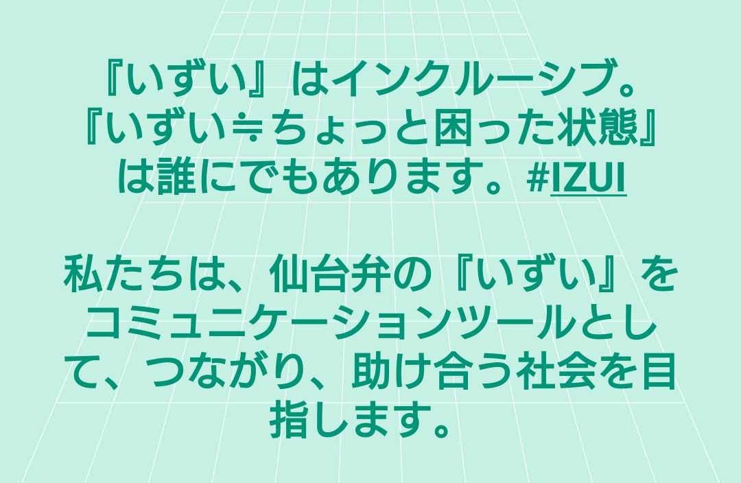 ともに「いずい」という仙台弁をコミュニケーションツールにして 繋がり助け合うカルチャーをつくりましょう。Go.!!