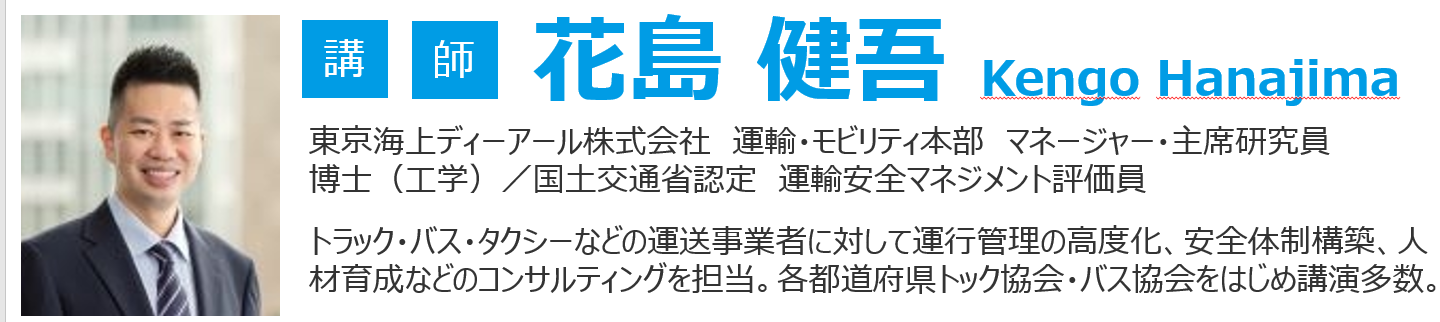株式会社デンソーソリューション、東京海上ディーアール株式会社、東京海上日動火災保険株式会社共催にて、運行管理における今後の動向やICT活用した制度改正内容等、最新事例も交えて、いちから説明します。
