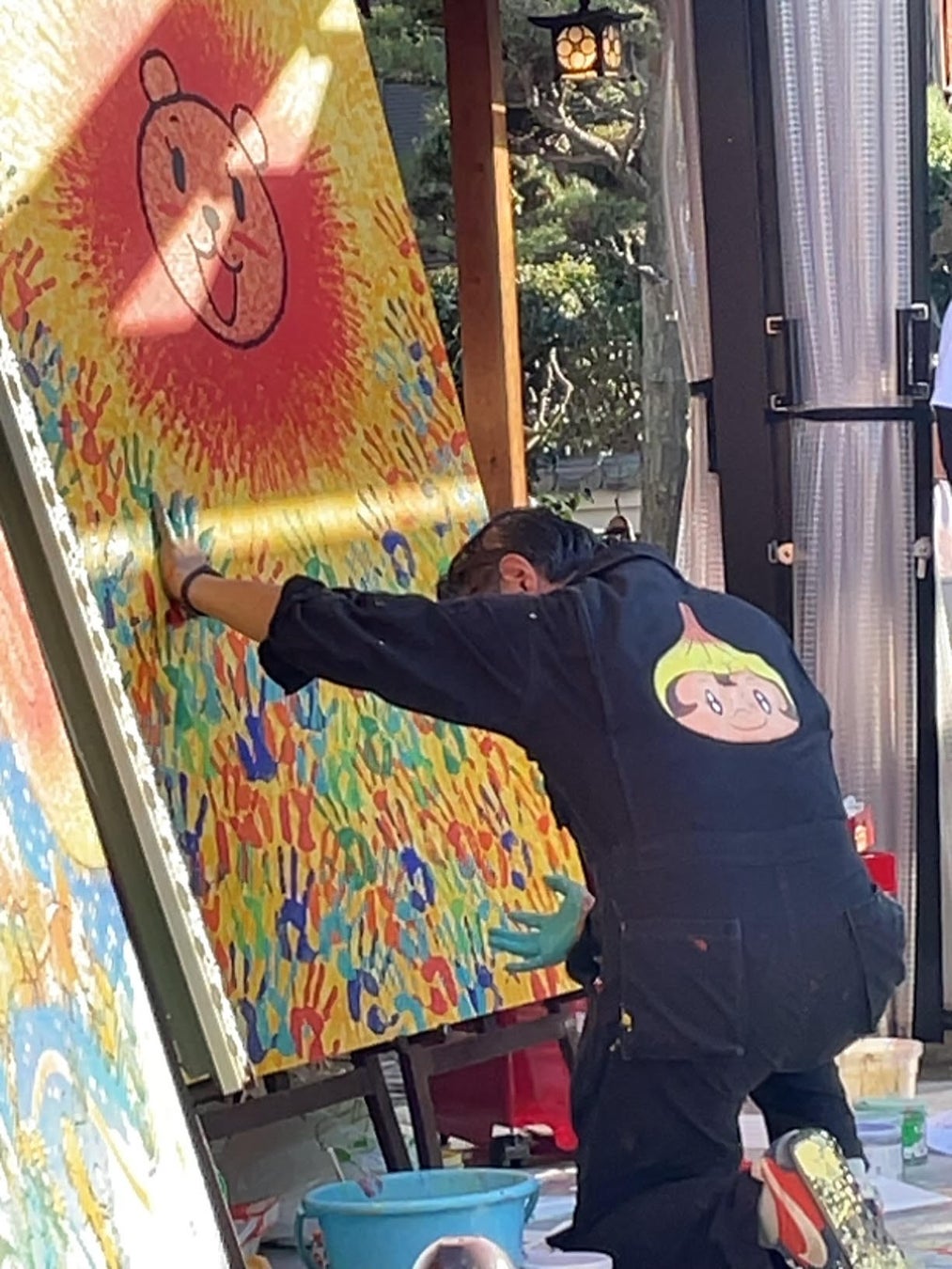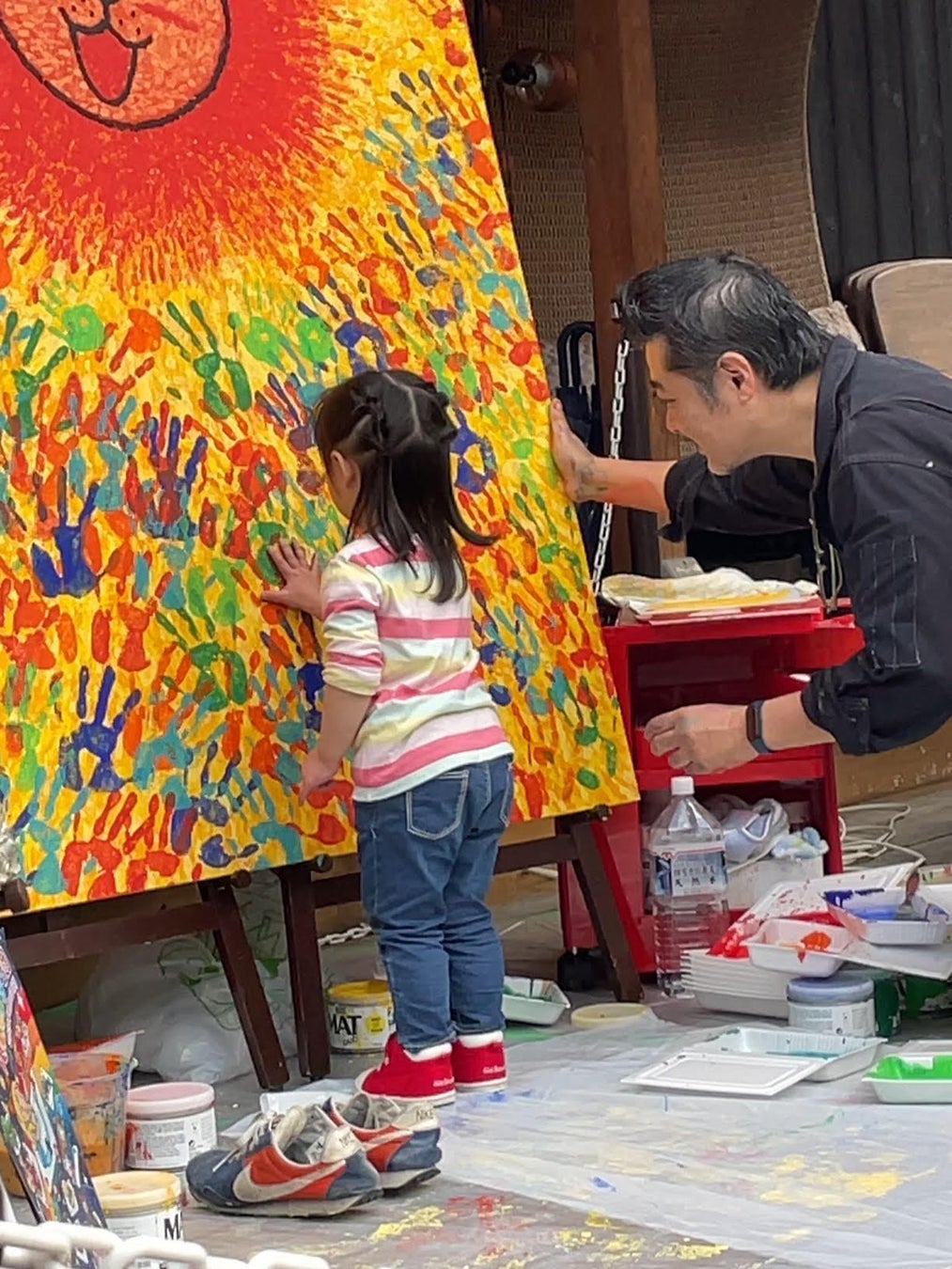 この作品はライブで描きました。すべて手で制作。子どもたちにも参加してもらいました。