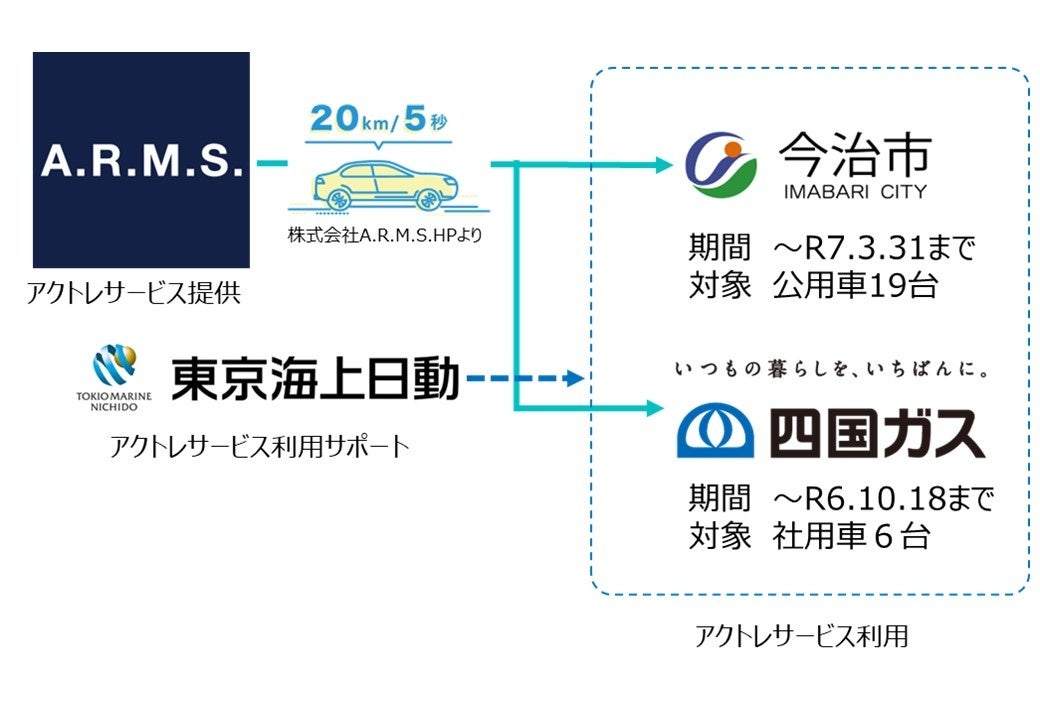 さらに、令和6年1月に今治市と包括連携協定を締結し、SDGsの実現に向けた取組で連携してきた四国ガス株式会社が、アクセルトレーニングに関心を寄せていただき、官民共同でアクセルトレーニングに取り組むことに合意。6台の社用車にアクセルトレーナーを搭載することになりました。さらに、株式会社A.R.M.S.と東京海上日動火災保険株式会社がサポートし、トレーニングの効果を定期的に見える化しながら、地域全体での脱炭素化と交通安全の促進を目指します。