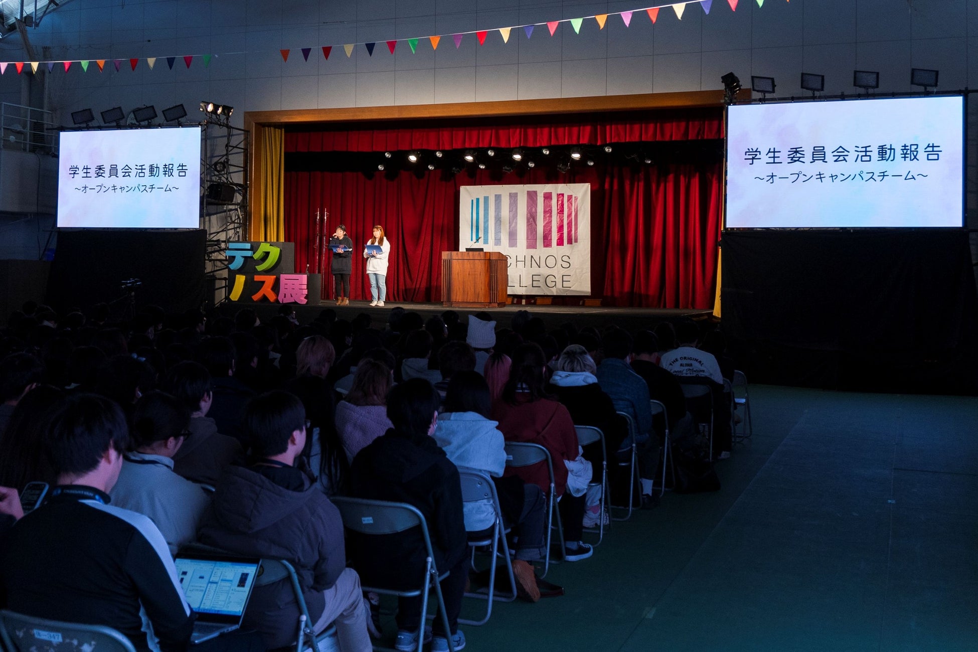 作品の展示だけではなく、各学科の学生たちがステージに上がり、学びの成果やプロジェクトなどの取り組みについてプレゼンテーションします。