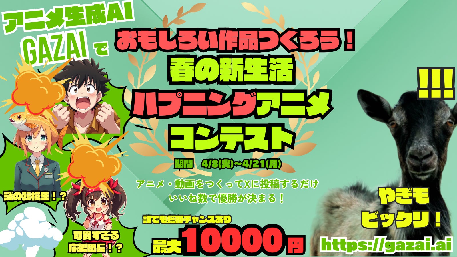 アニメ生成AIのGAZAIが2025年4月8日(火)11時より春の新生活【ハプニング】アニメコンテストを開始!