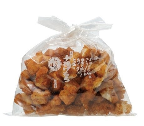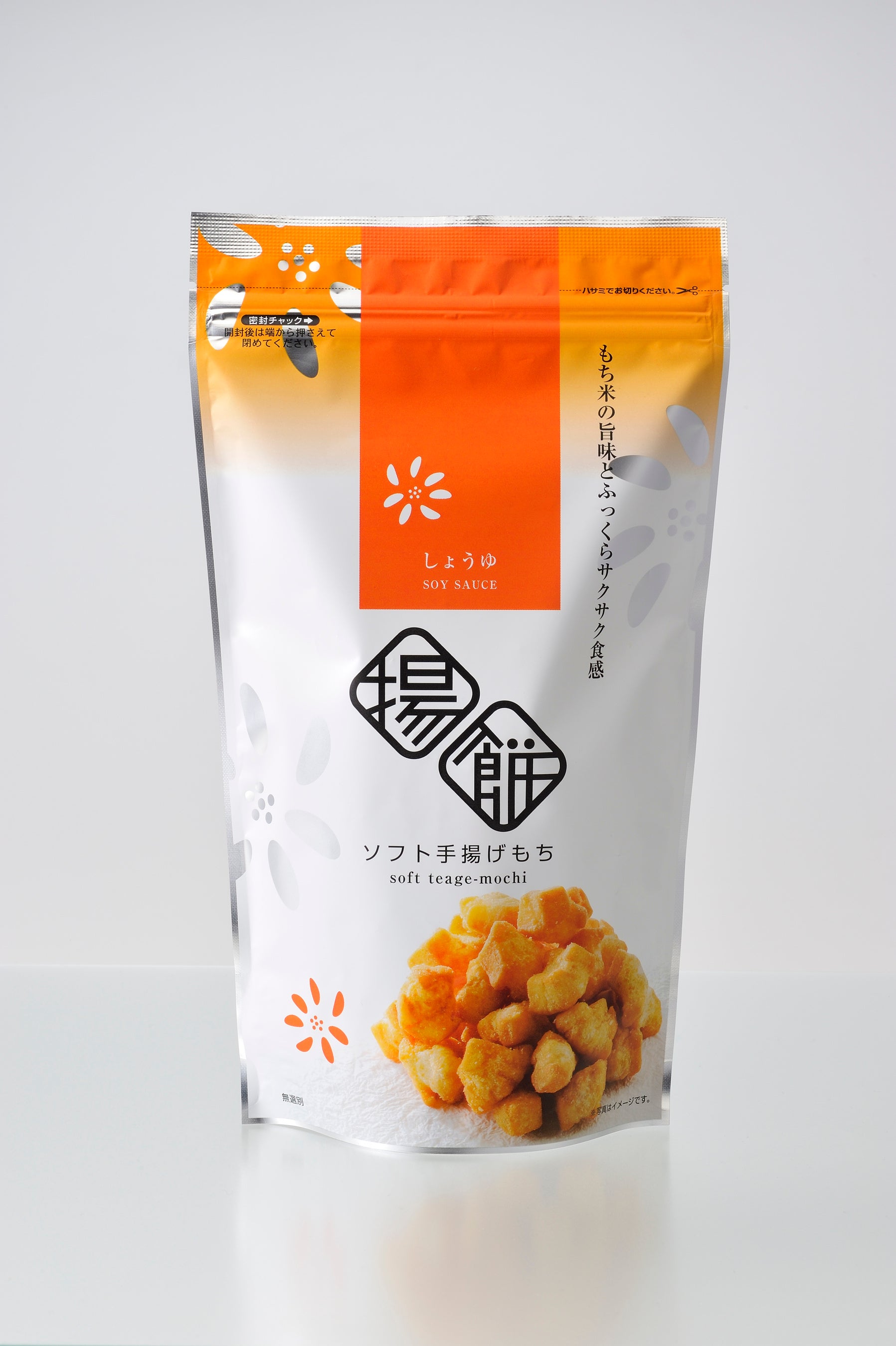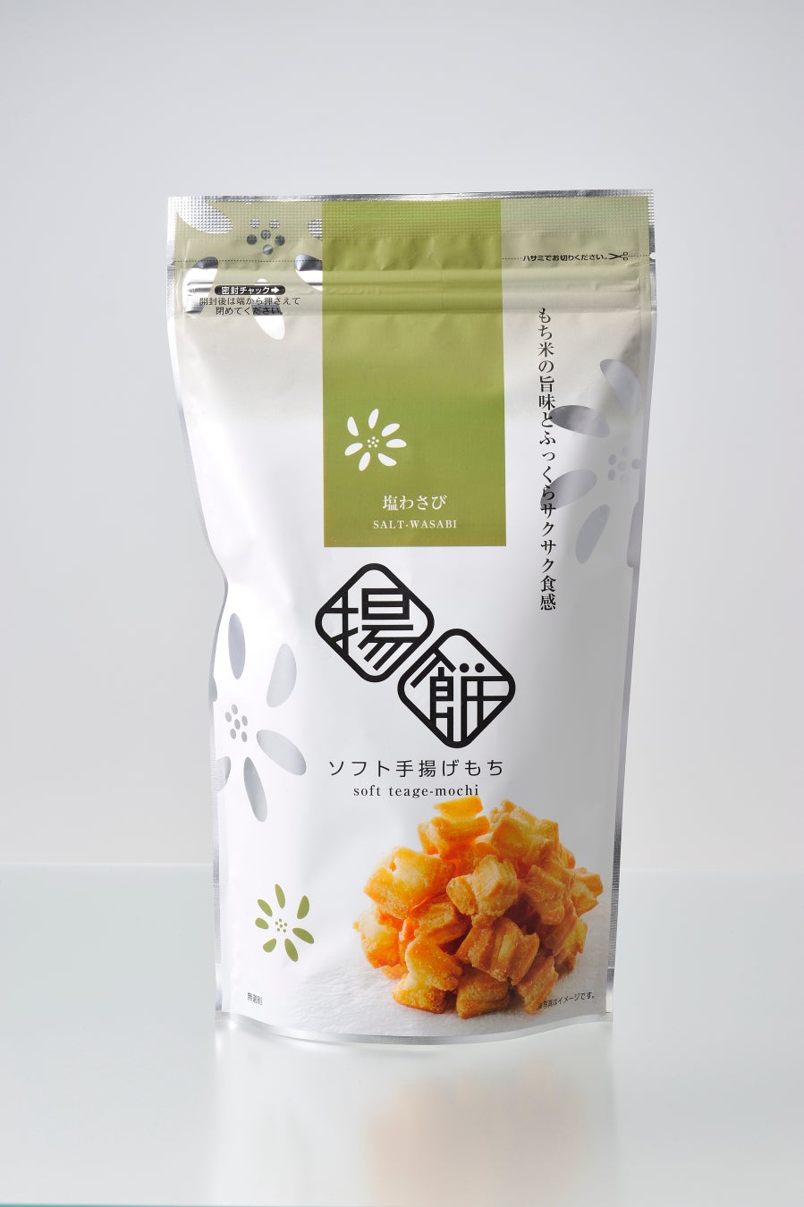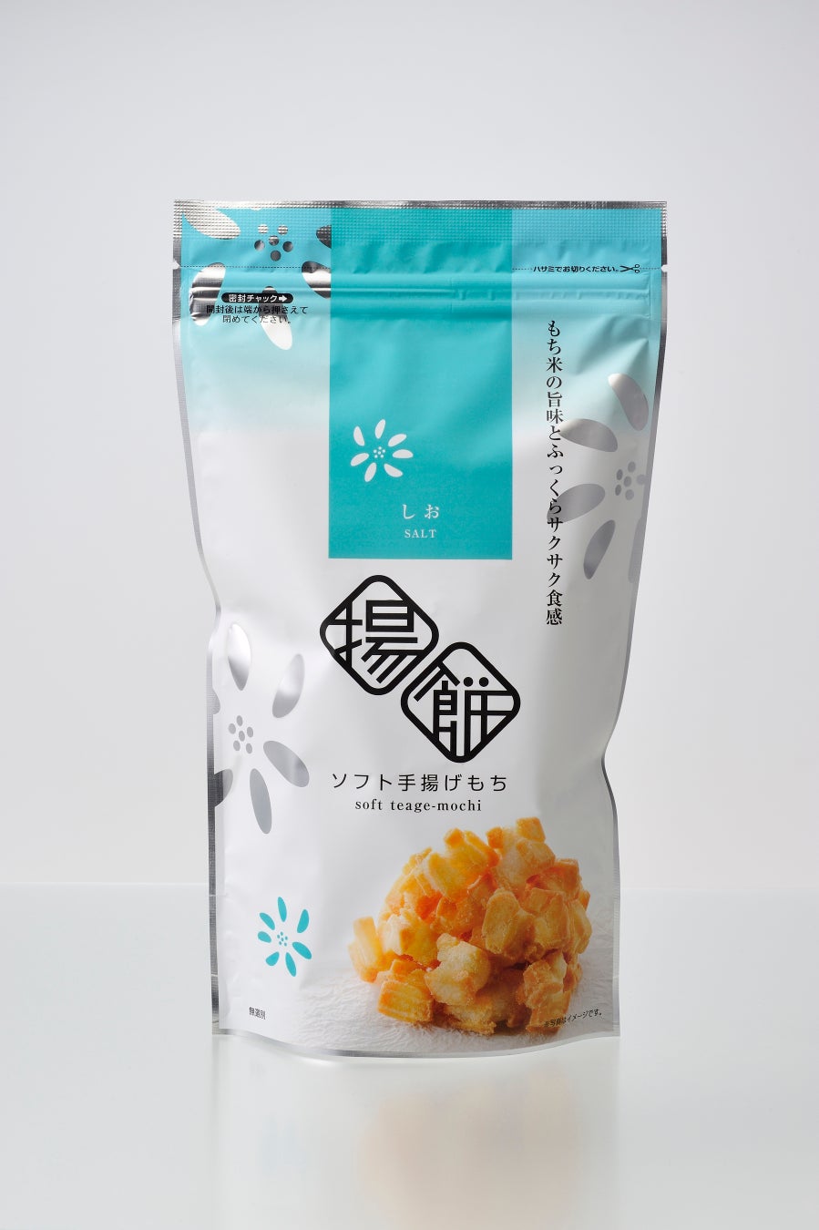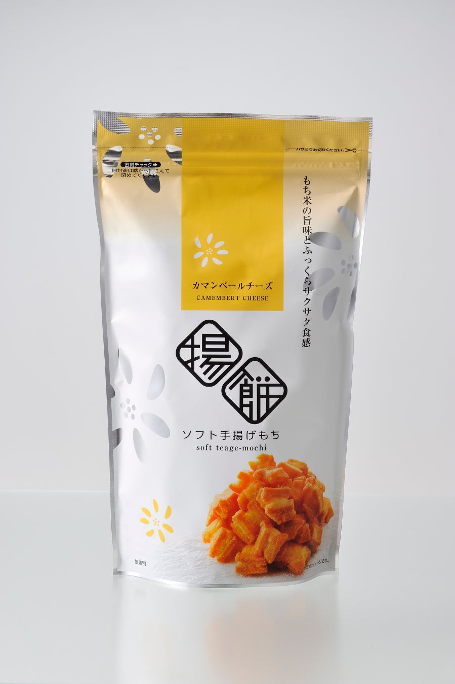 手揚げもちしょうゆ味、しお味、カマンベールチーズ味、、七味、食感のやわらかいソフトしお味、米生地にえびの旨みたっぷりのえび塩味。
