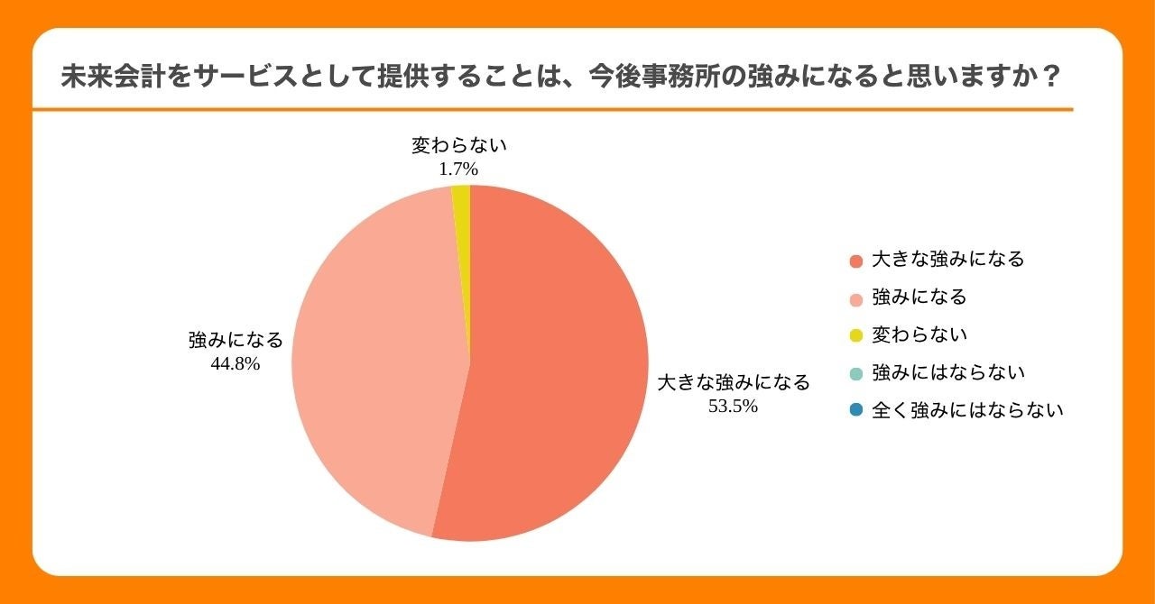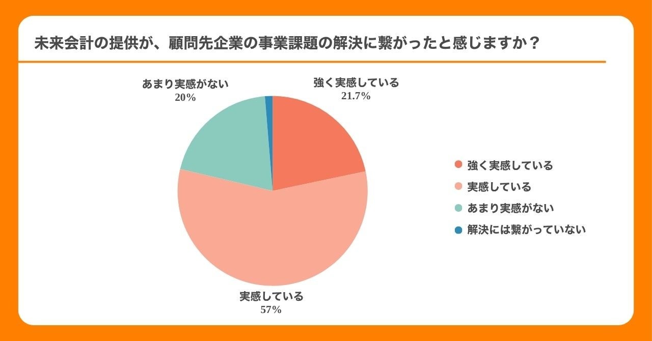 今回の調査結果から、未来会計が、顧問先の中小企業の事業成長や経営課題解決の一手となり、会計事務所の提供価値の向上につながっていることがわかりました。
