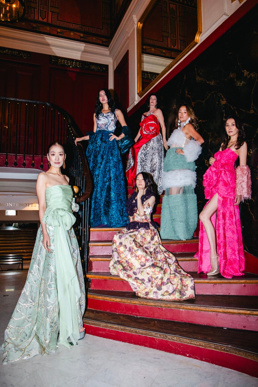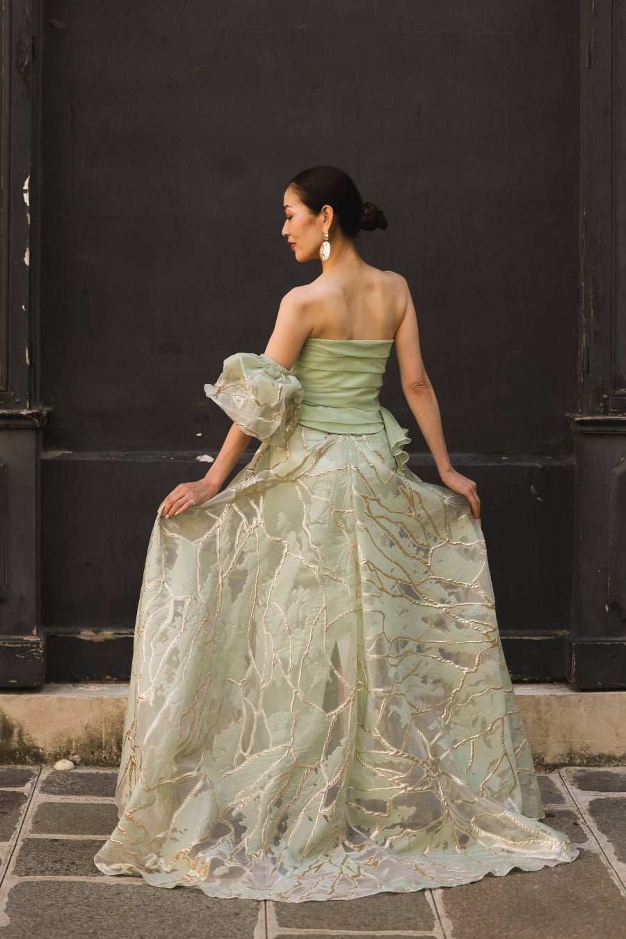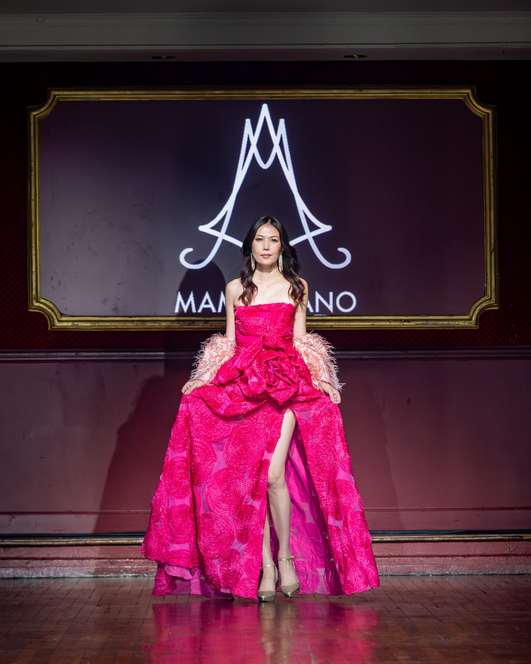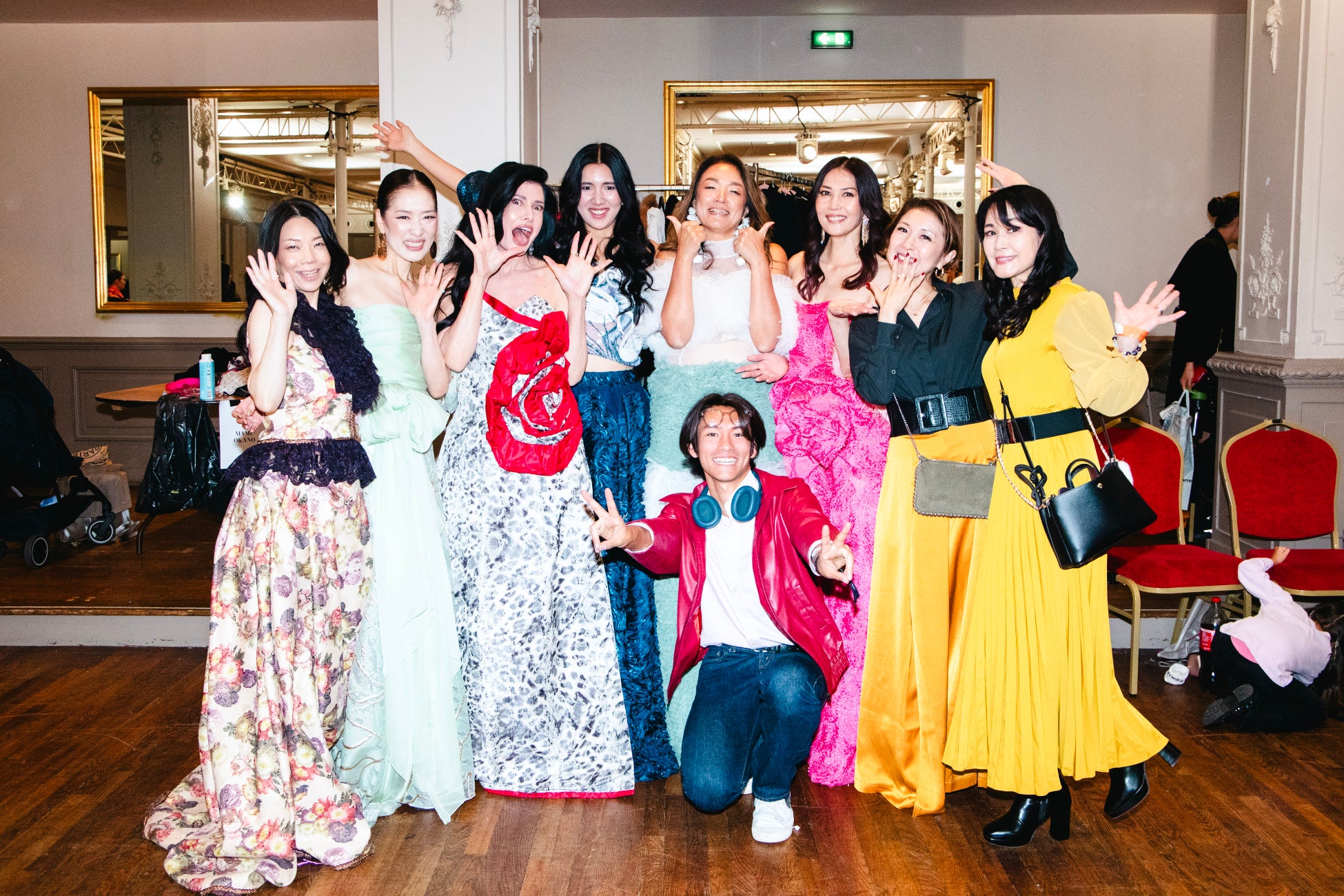 彼女たちが纏うドレスは、モナコを拠点に活動するデザイナーMAMI OKANOによる新作コレクション。ランウェイデビューを果たした日本人モデル2名のための世界にたった一着のドレスをMAMI OKANOがデザインし、新作のコレクションとして採用した背景がある。MAMI OKANOは、ドレスデザイナーであり、女性を輝かせるプロデューサーとしても活動。